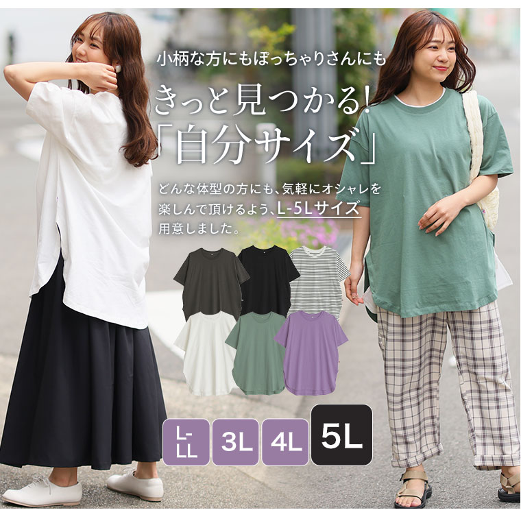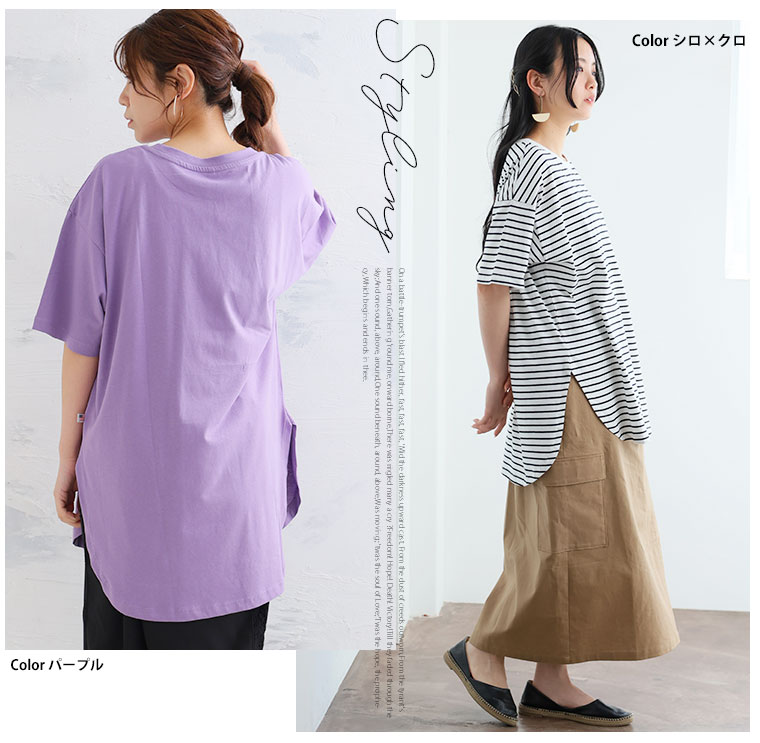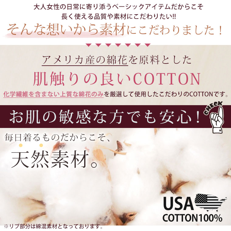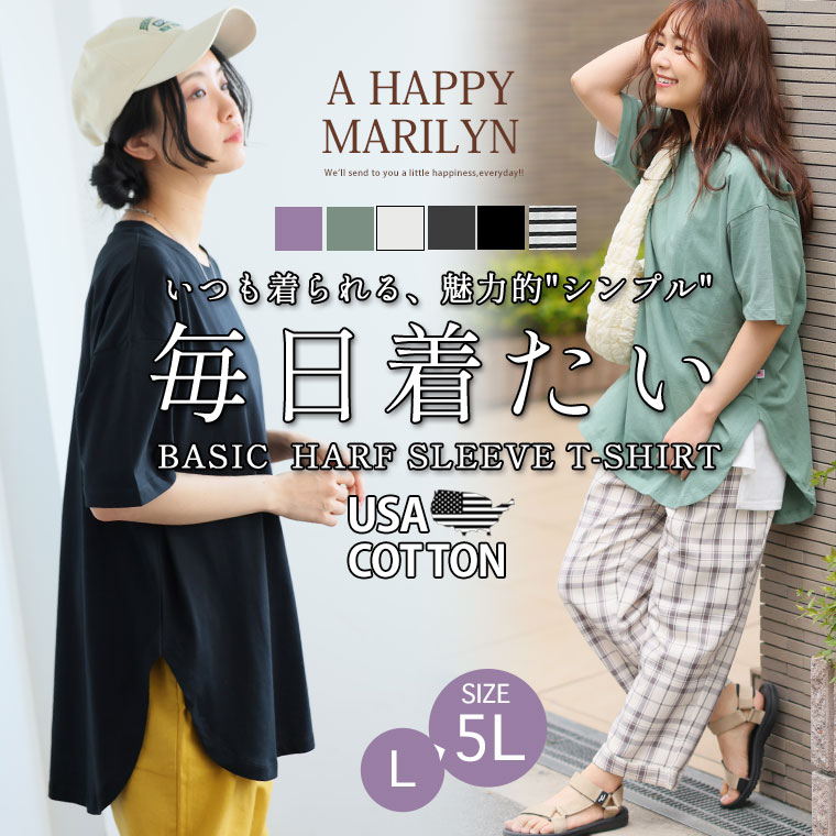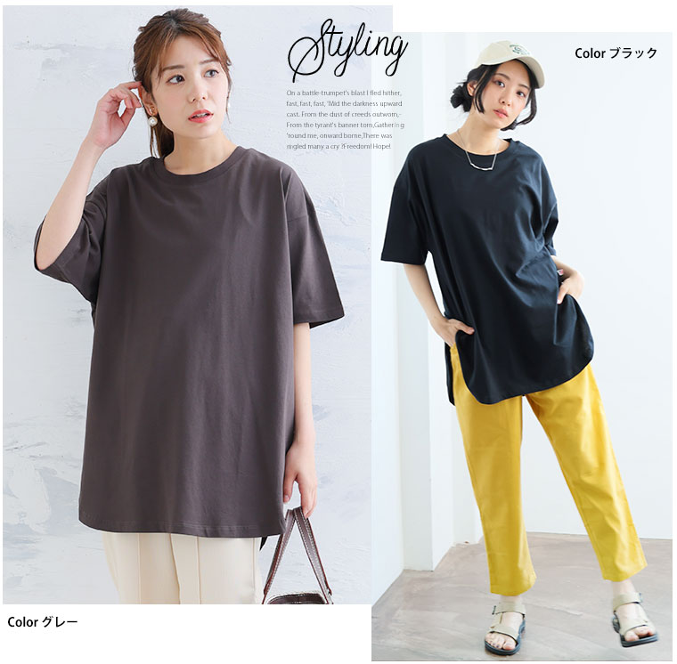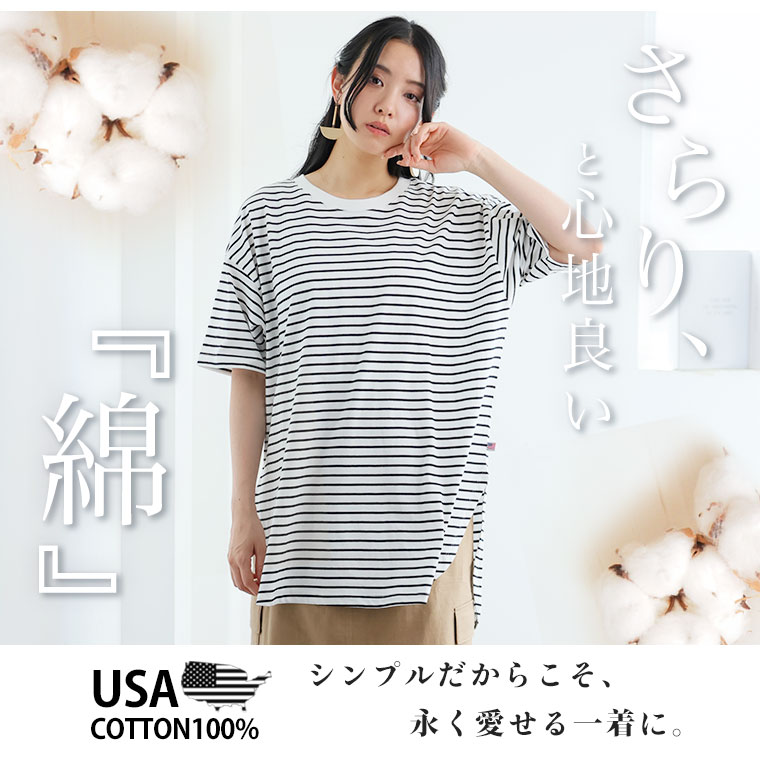 USAコットンでさらりと着れる裾ラウンド五分袖Tシャツ