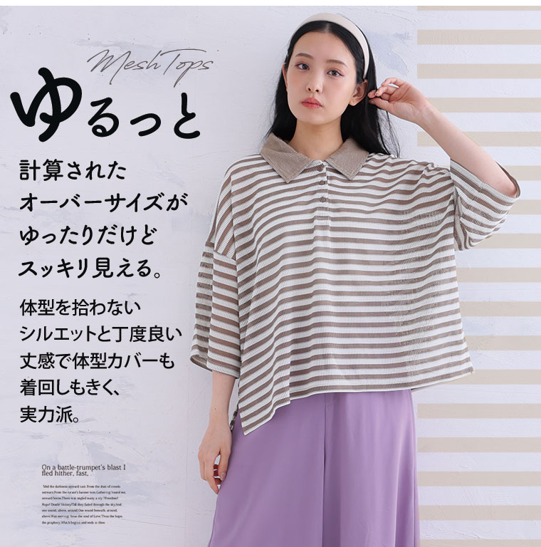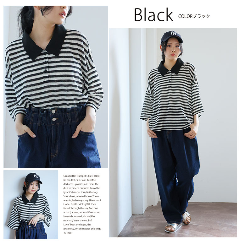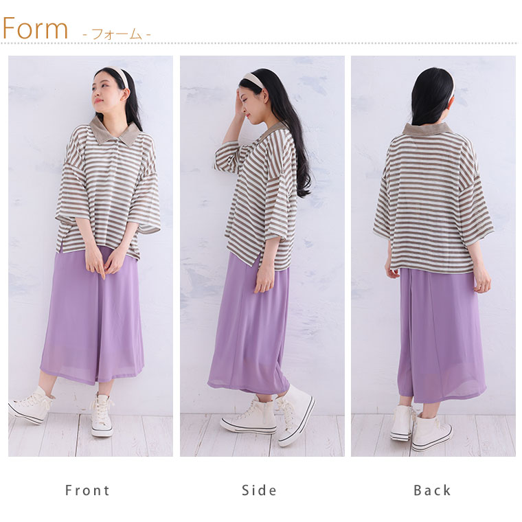 女性らしく着られるゆるっとシルエットと、クラシックな長めの5分袖もポイント