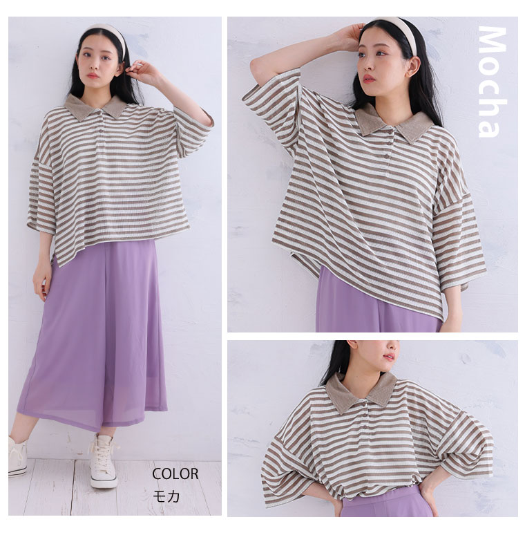 爽やかなストライプ柄を、無地の襟が引き締めてくれます。