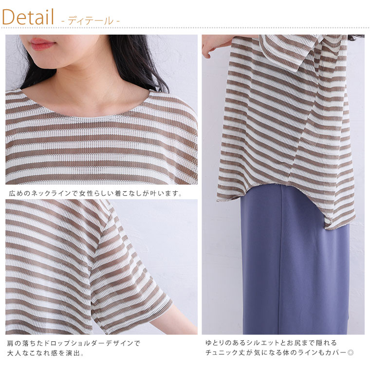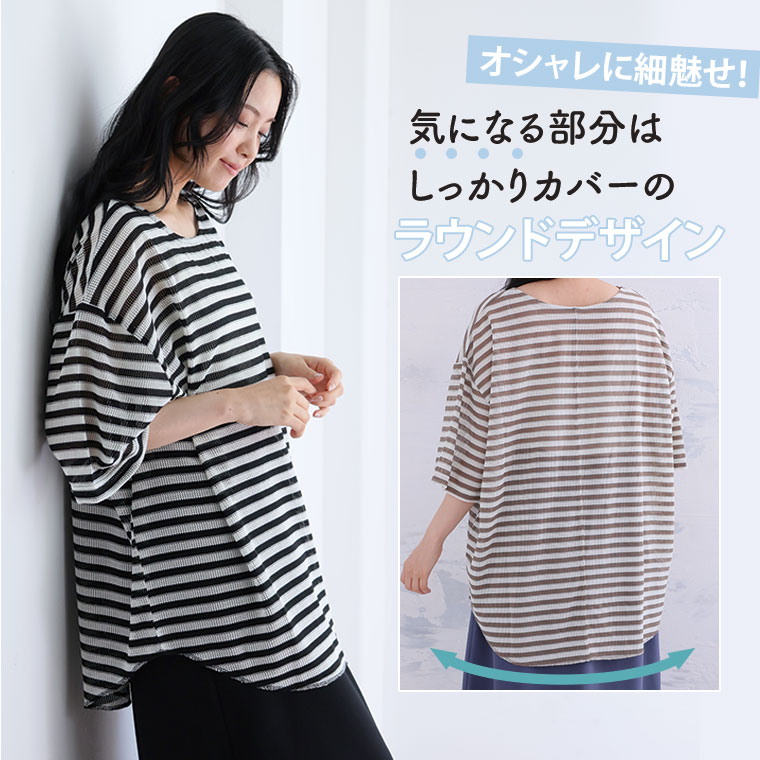 適度にゆとりのあるシルエットとお尻まで隠れるチュニック丈が気になる体のラインもカバー◎