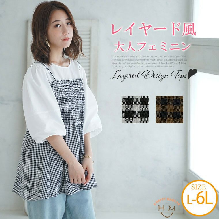 5. 大きいサイズ 簡単 着映えコーデが完成! レイヤード風 シャーリング トップス | 大きいサイズの通販ならハッピーマリリン