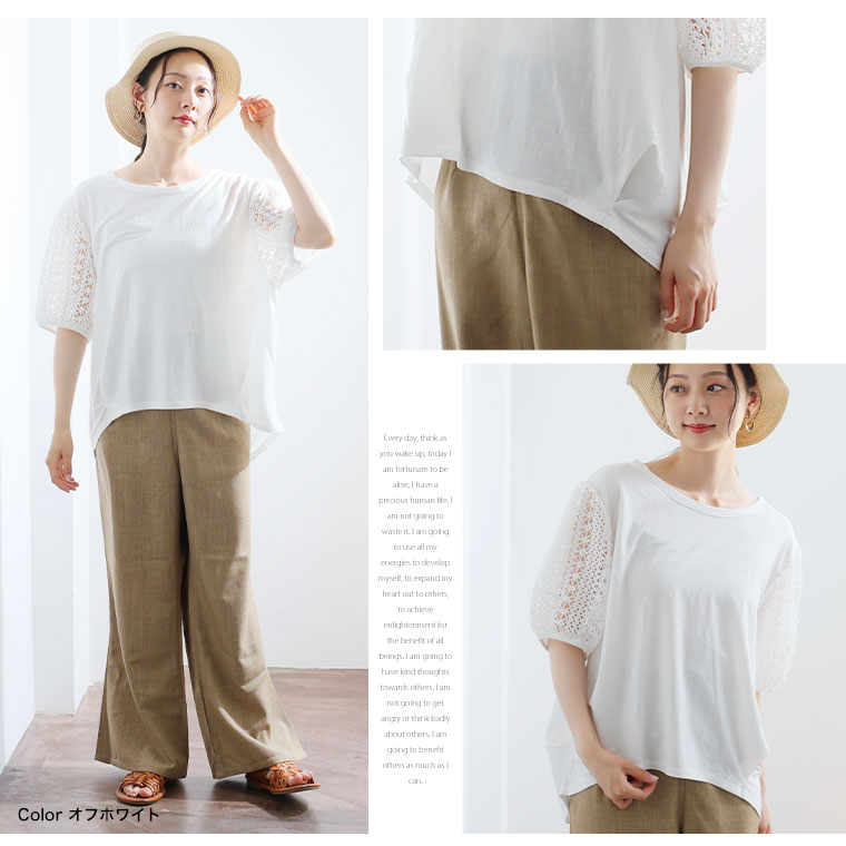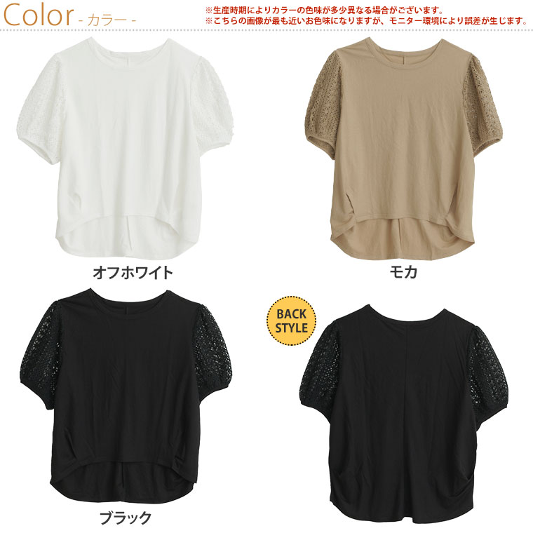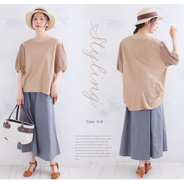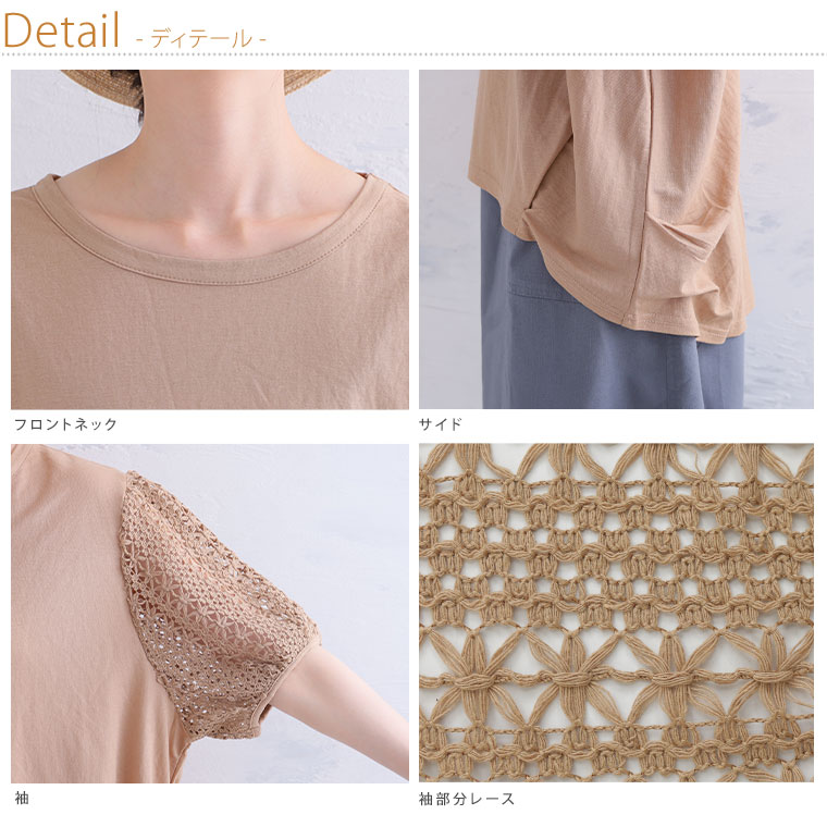 【Pastel Leaf】袖ラッセル×裾タックチュニック