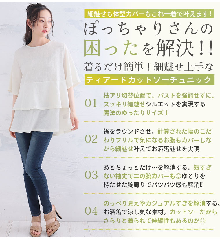 さらりとお洒落! ゆったりなのに着痩せる! スタイルアップ ティアード カットソー トップス