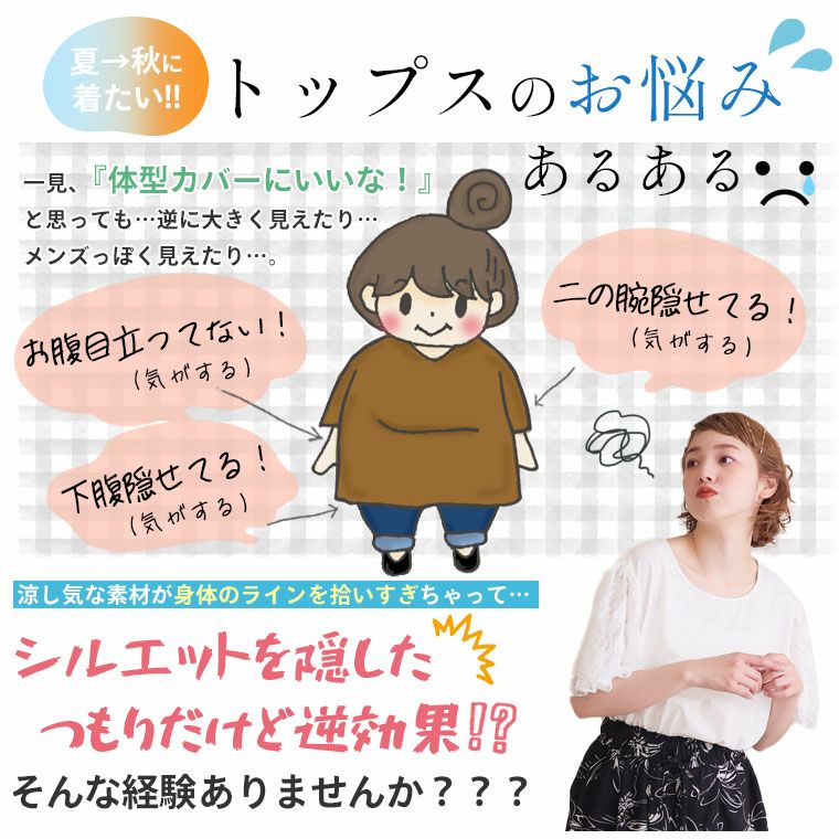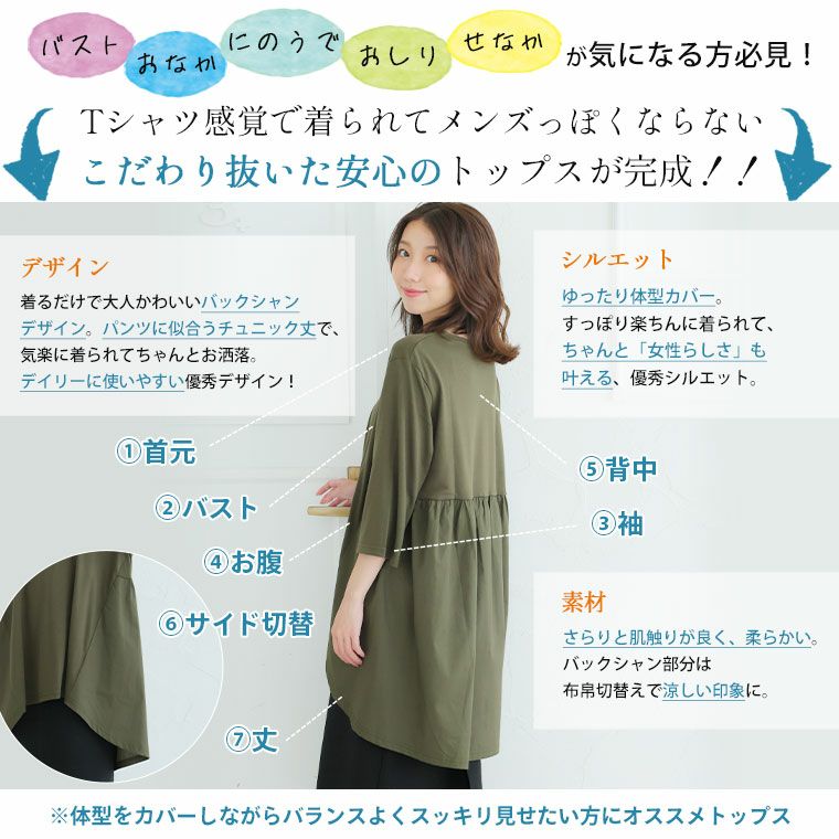 気になる部分をしっかり隠す!体型カバーバック切り替えチュニック