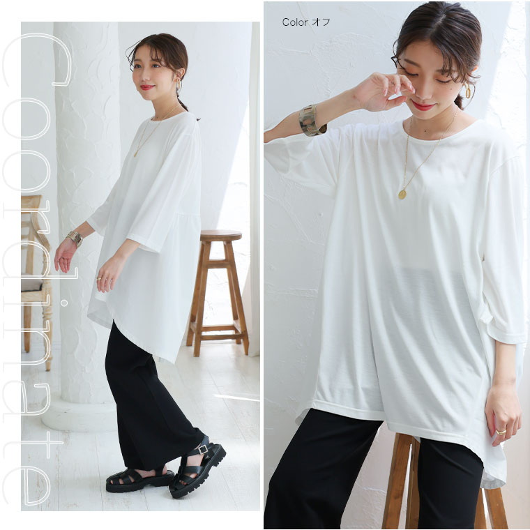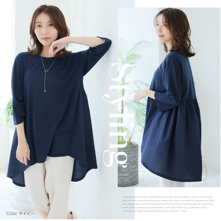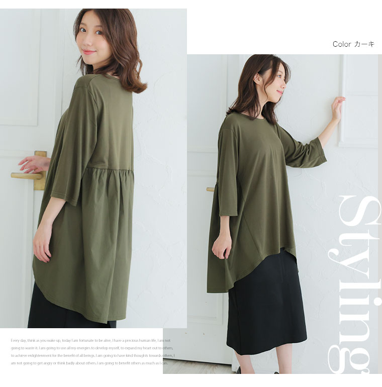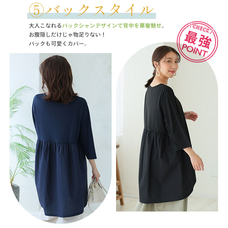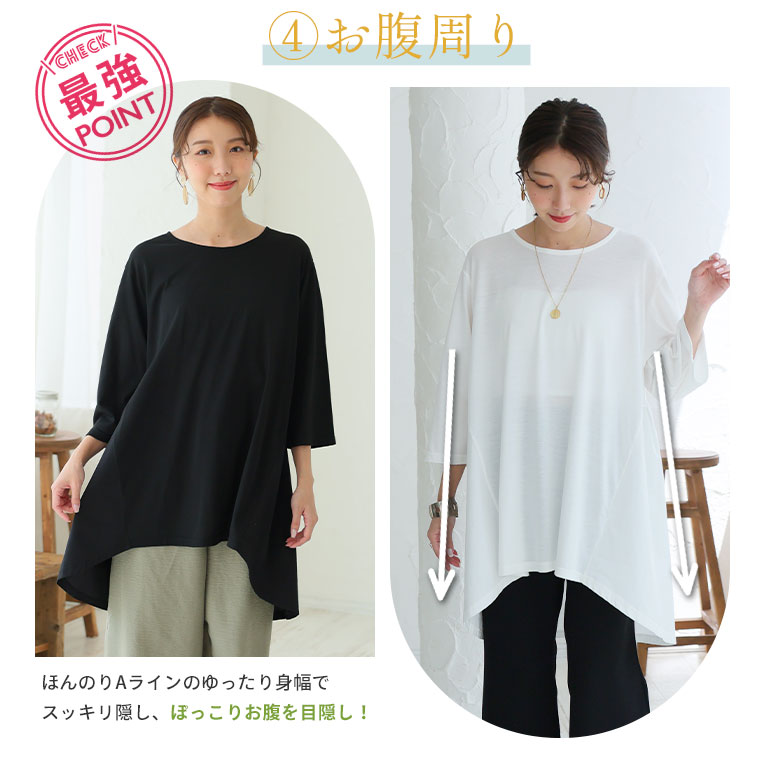 4. 大きいサイズ おなか・おしり・二の腕OK 体型カバー バック切替 チュニック