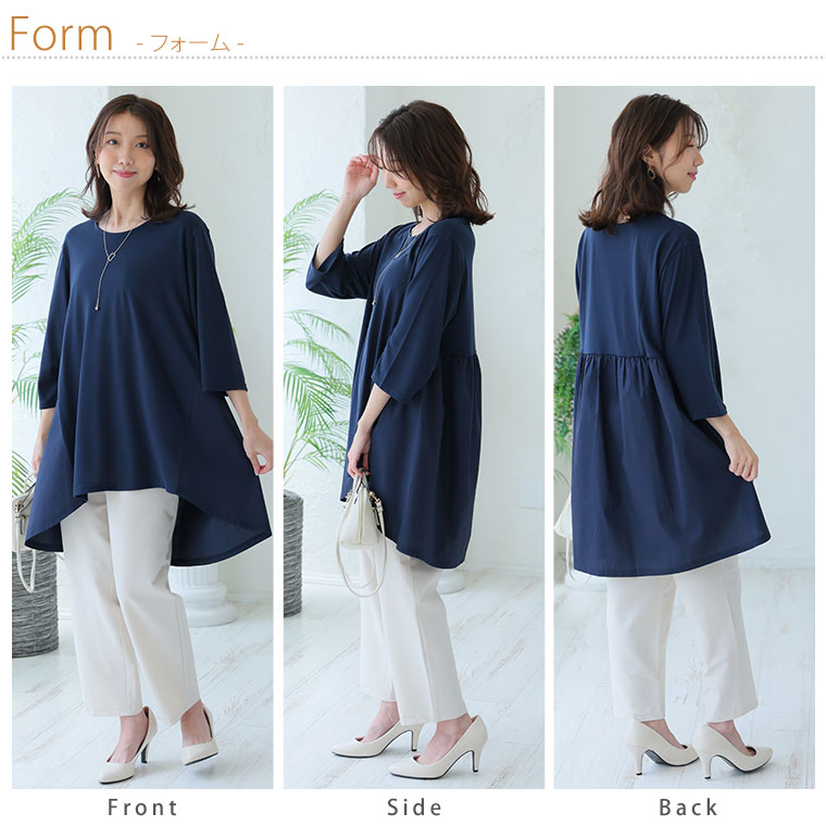 大きいサイズ おなか・おしり・二の腕OK 体型カバー バック切替 チュニック