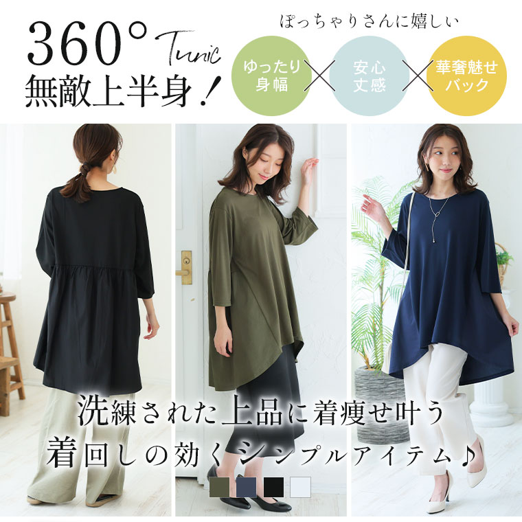 3. 大きいサイズ おなか・おしり・二の腕OK 体型カバー バック切替 チュニック