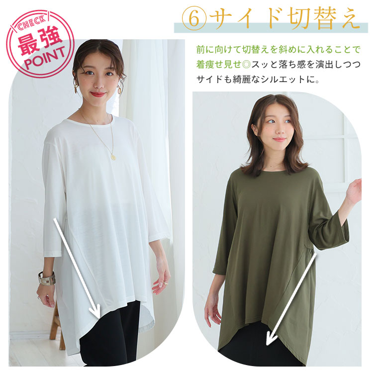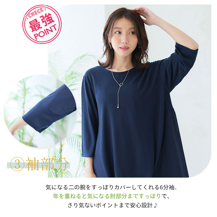 6. 大きいサイズ おなか・おしり・二の腕OK 体型カバー バック切替 チュニック
