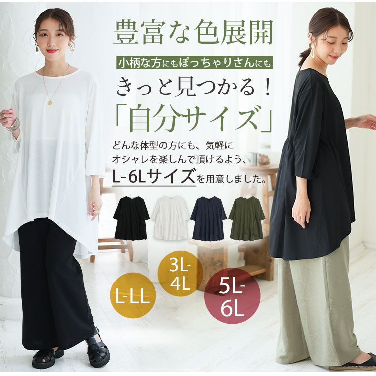 オリジナル トップス チュニック LL 3L 4L 5L 6L 夏 夏物 夏服 秋 秋物 秋冬 ぽっちゃり ゆったり プラスサイズ かわいい おしゃれお腹 二の腕カバー お尻 おなか・おしり・二の腕OK 体型カバー バック切替 チュニック