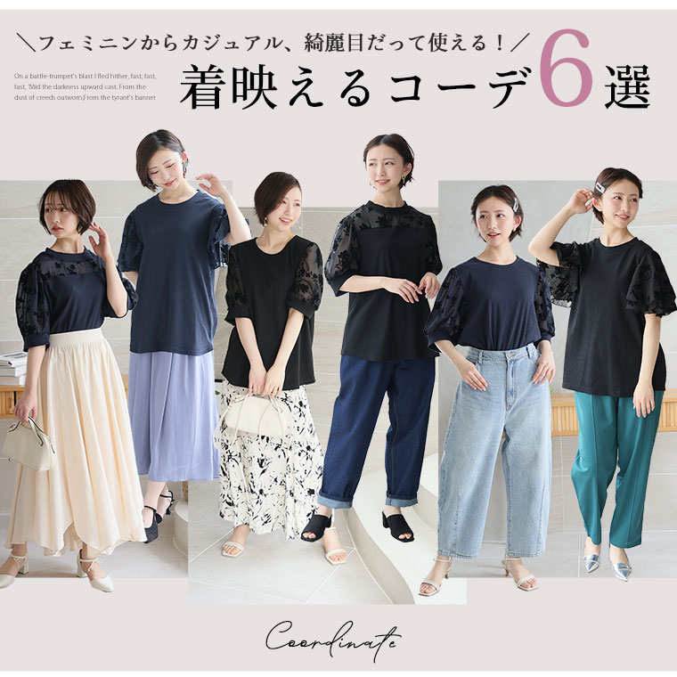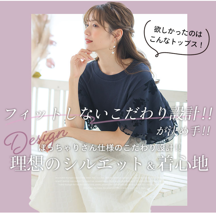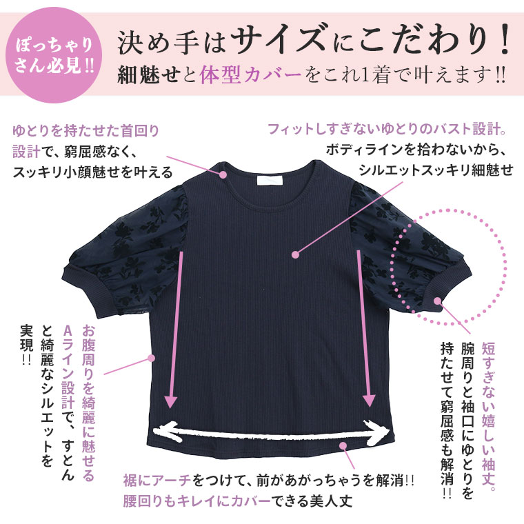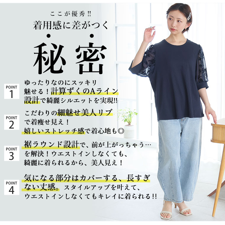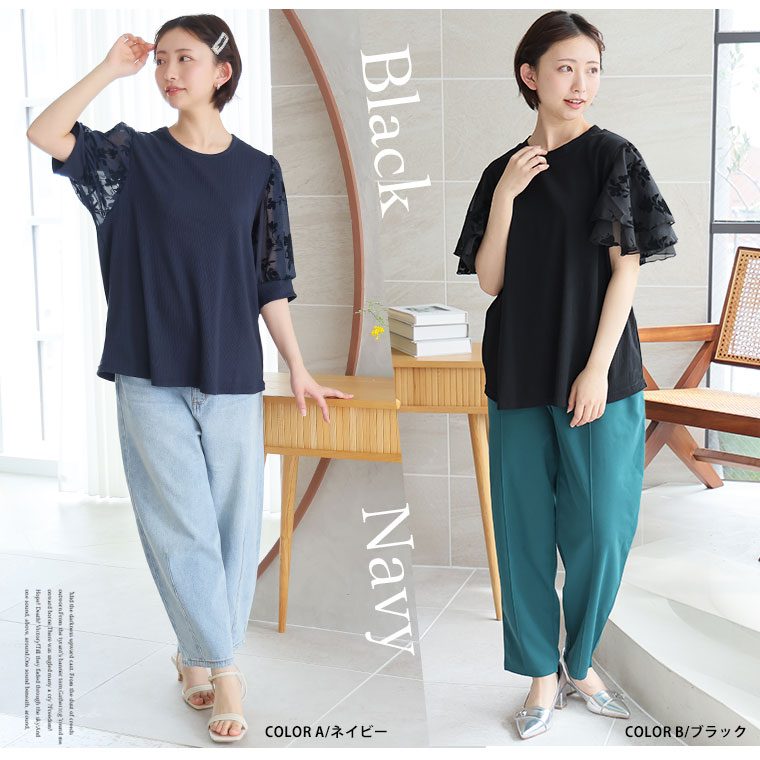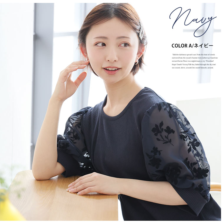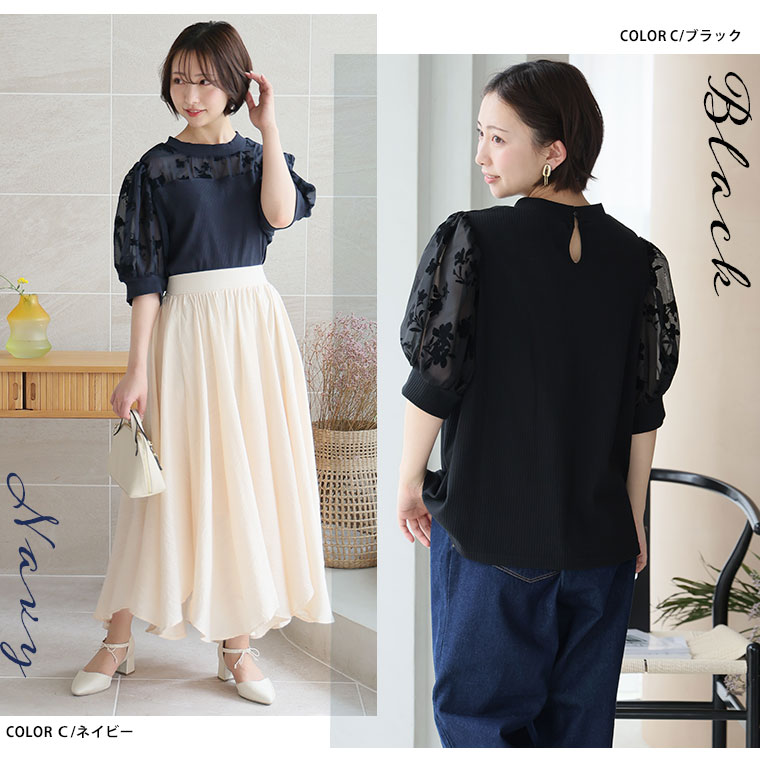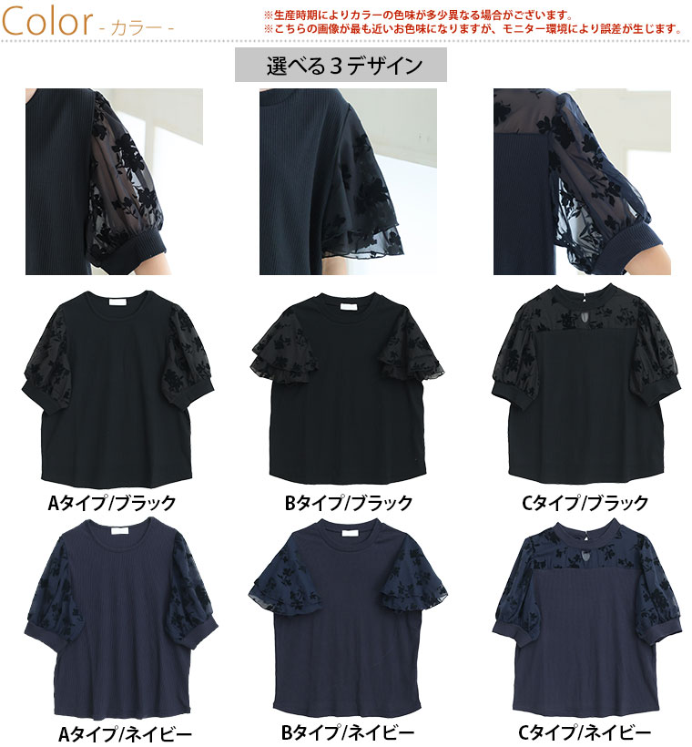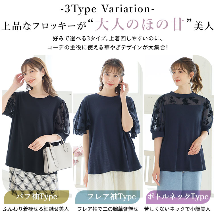 選べる3デザイン 上品レディーなフロッキー袖リブカットソー