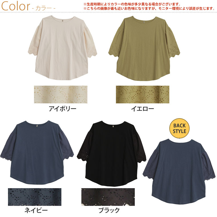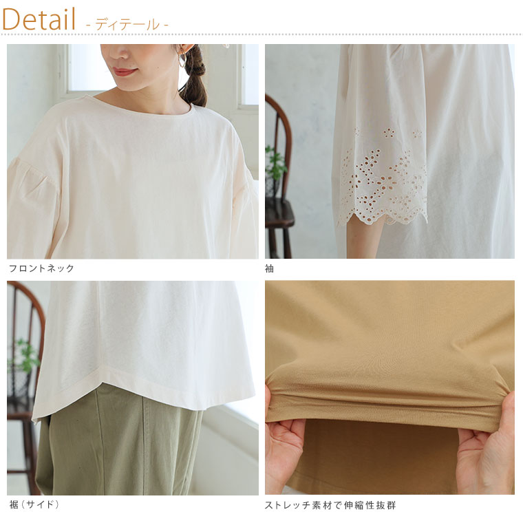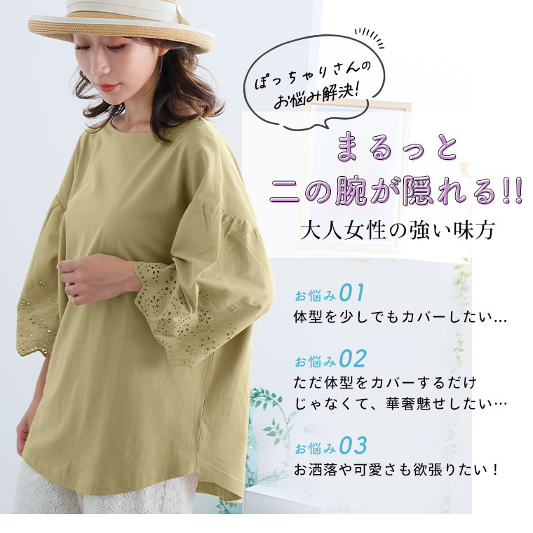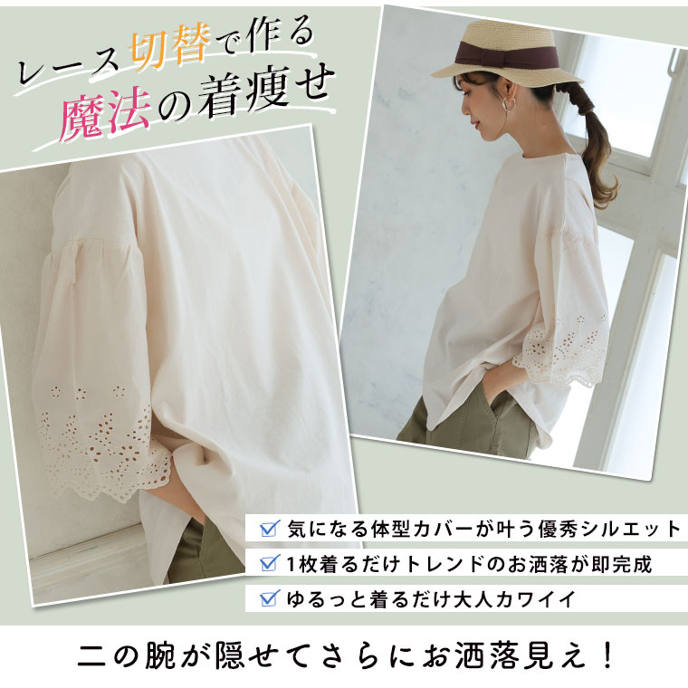 可愛く二の腕をカバー!袖刺繍レースプルオーバー
