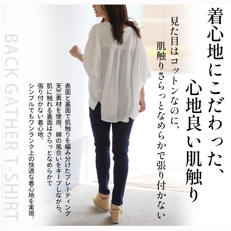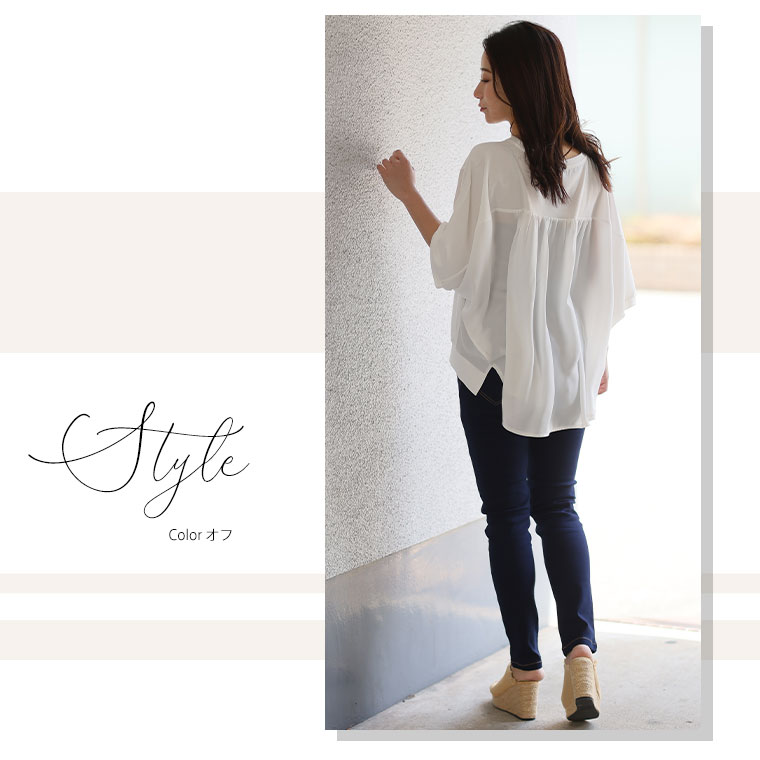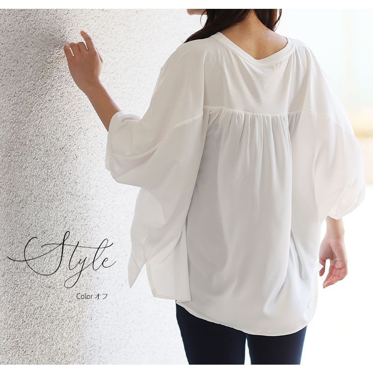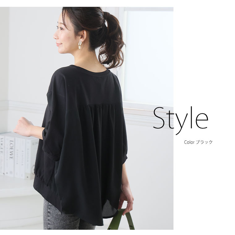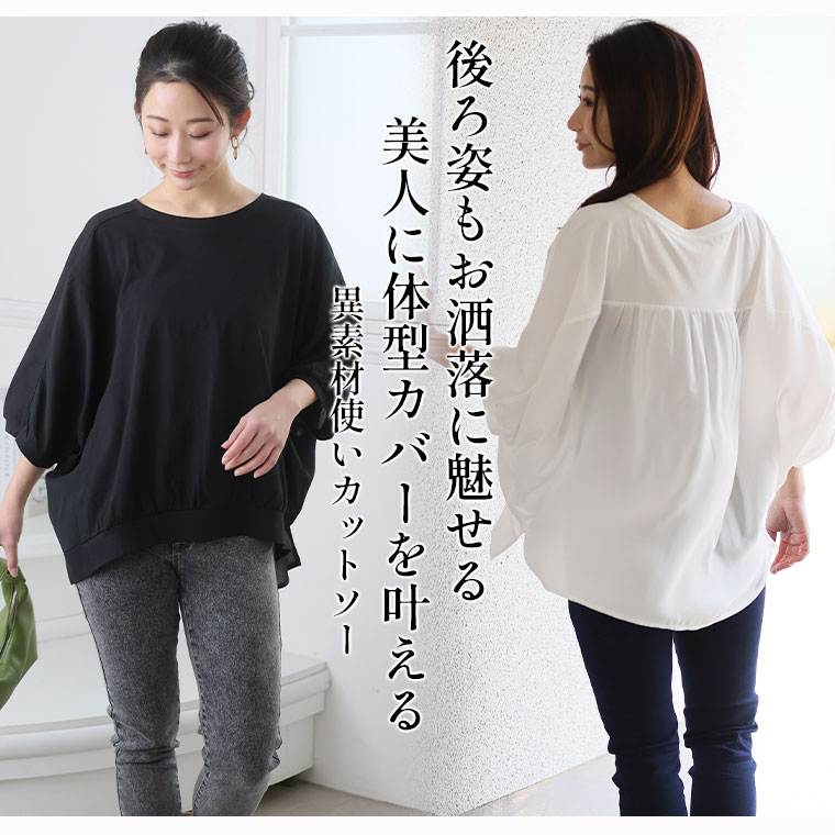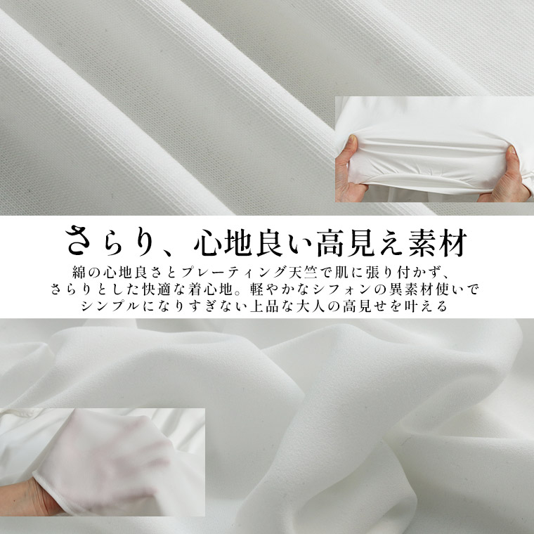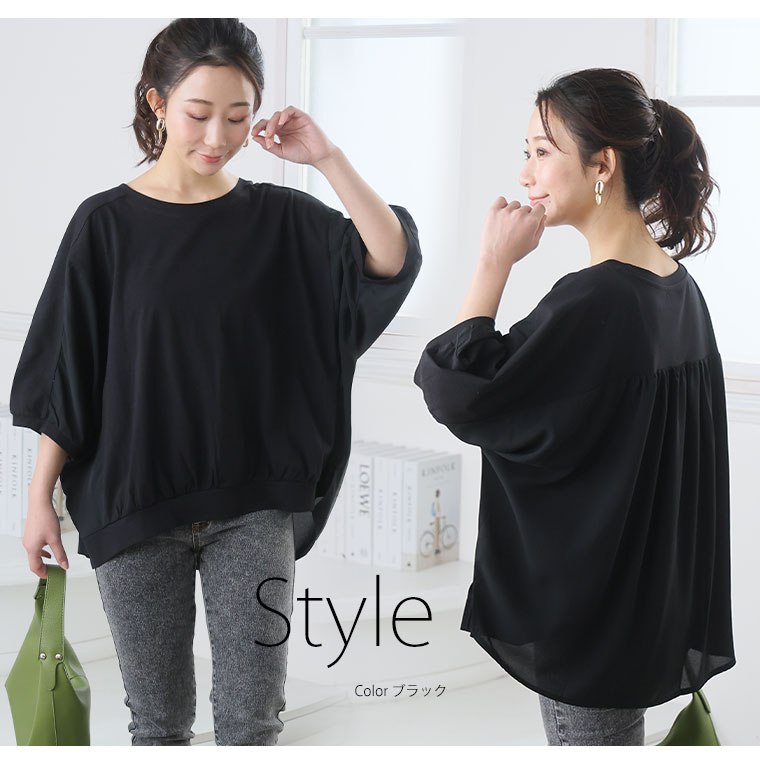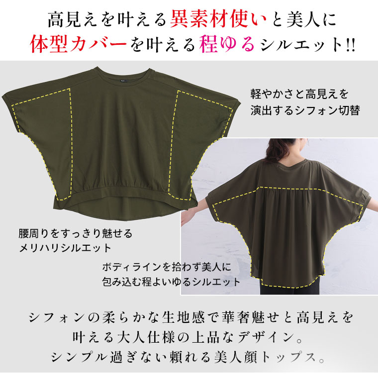 快適なさらっと素材と軽やかなシフォンの異素材使いで上品魅せな大人トップス