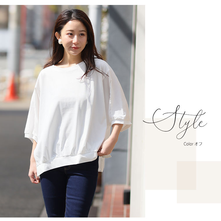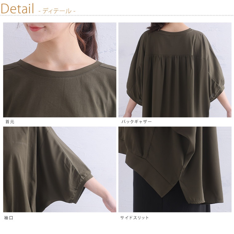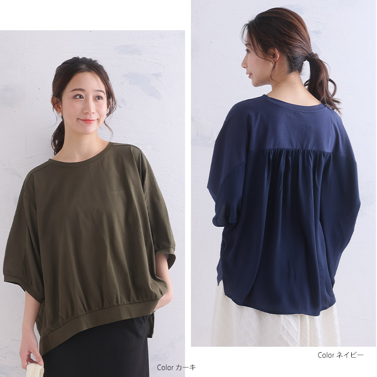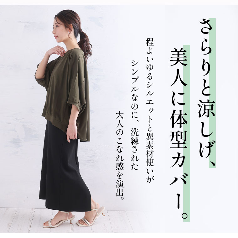 さらり涼しげ 程ゆるシルエットの異素材切替プルオーバー