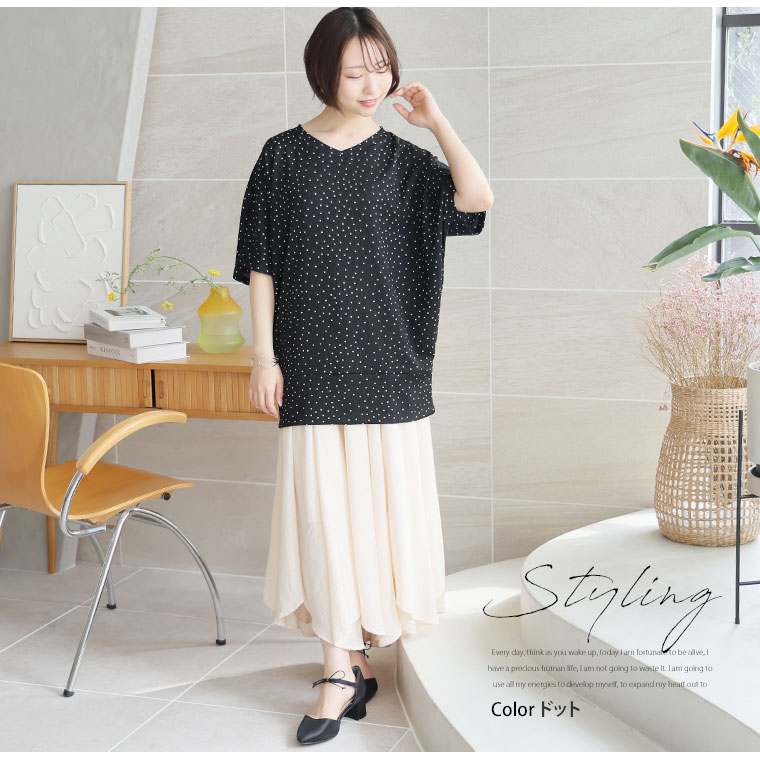 さらりと涼しい! 体型カバーが得意な 華奢魅せ Vネック