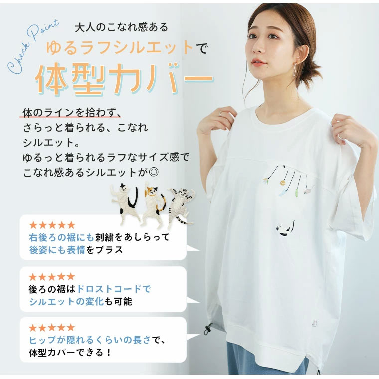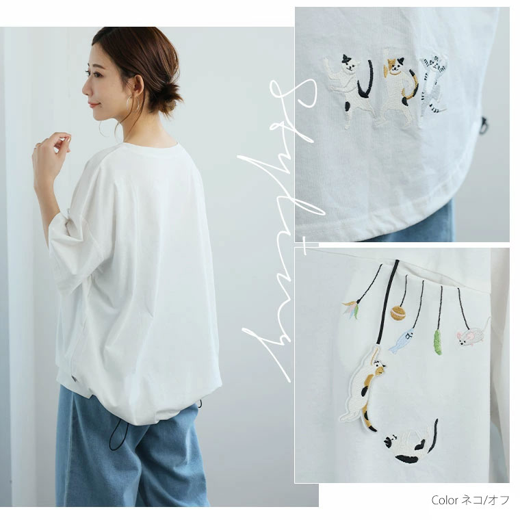 遊び心がいっぱいの温かみあるワンポイント刺繍TOPS