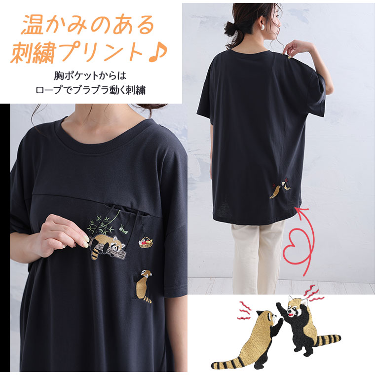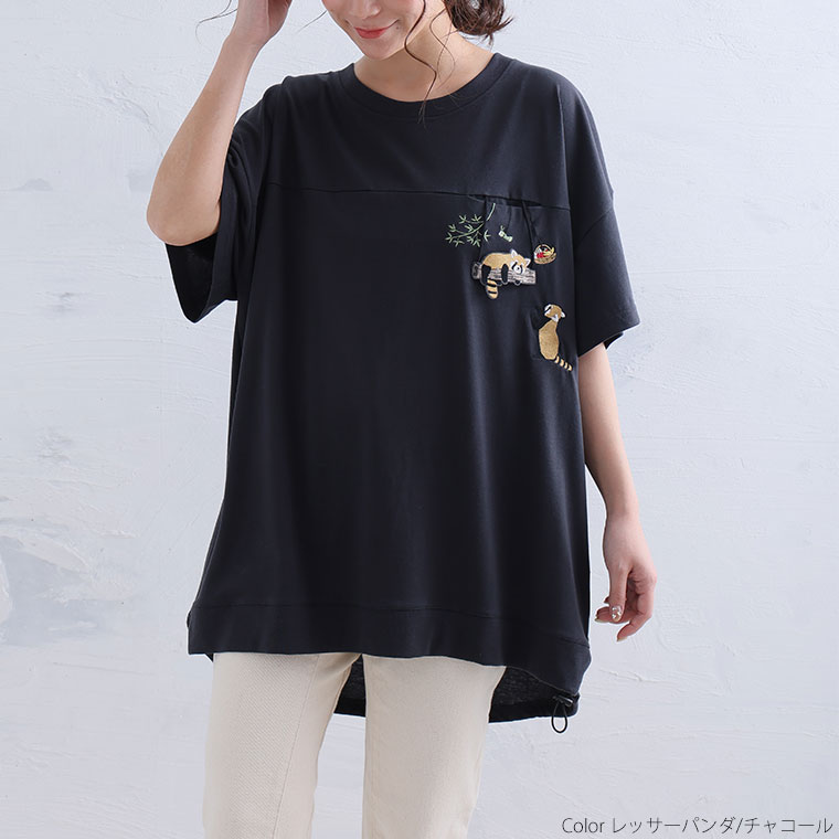 ぶらぶらレッサーパンダと猫がかわいい!ドロストプルオーバー