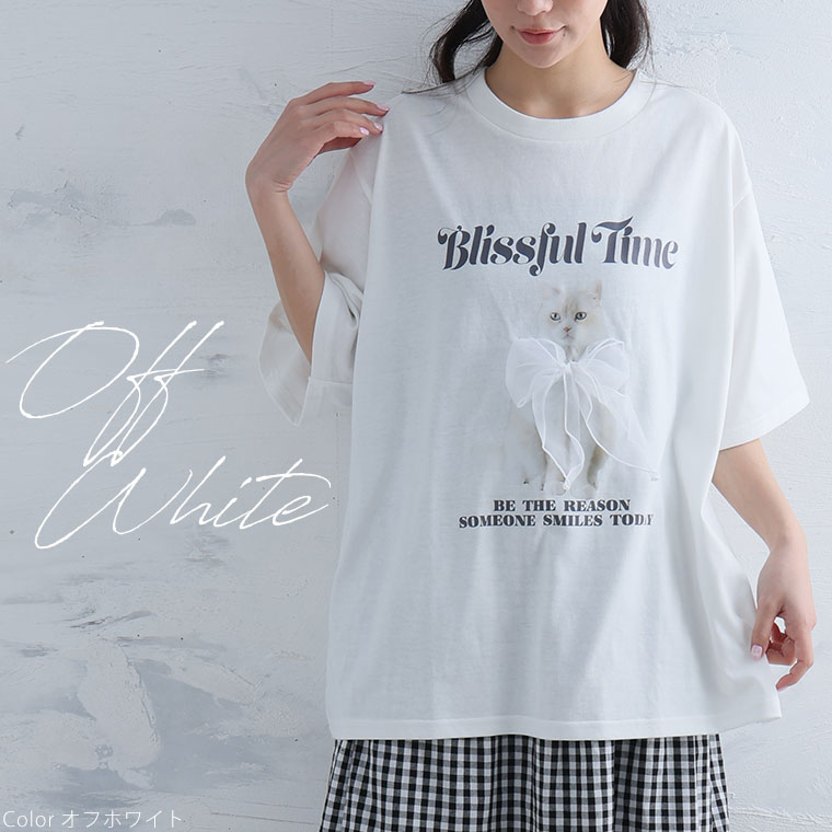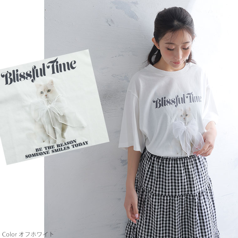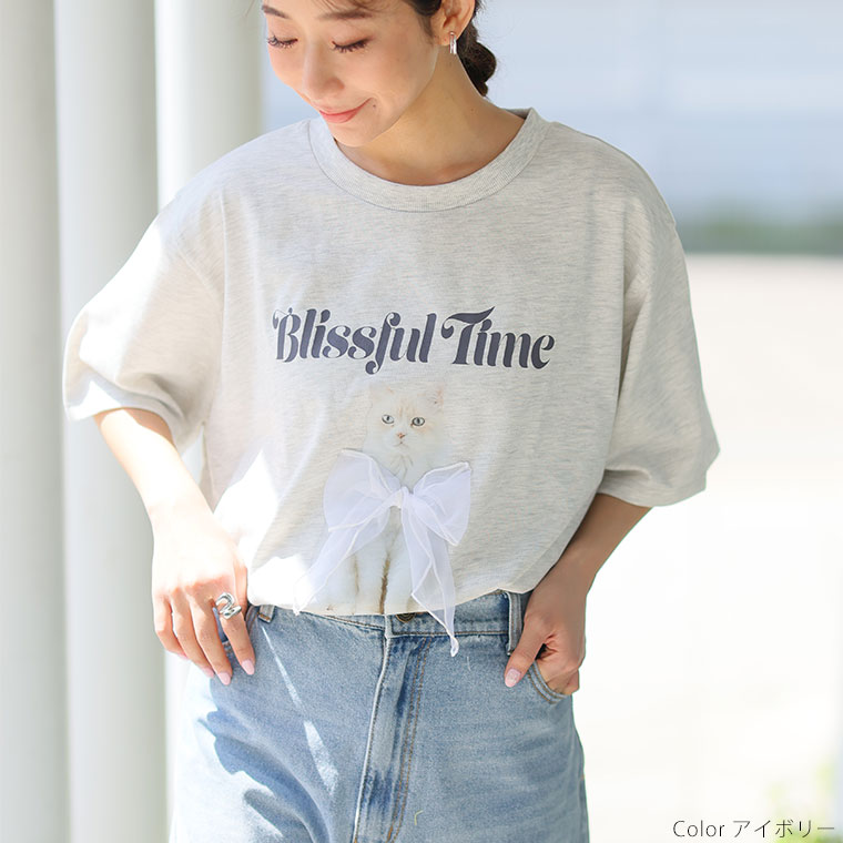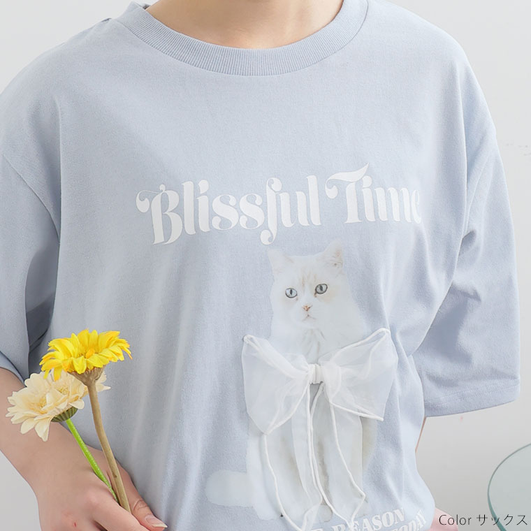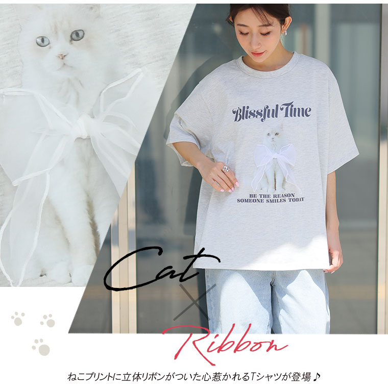 トレンドのキャットプリントにリボンモチーフを取り入れたなTシャツが登場