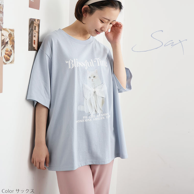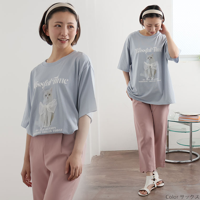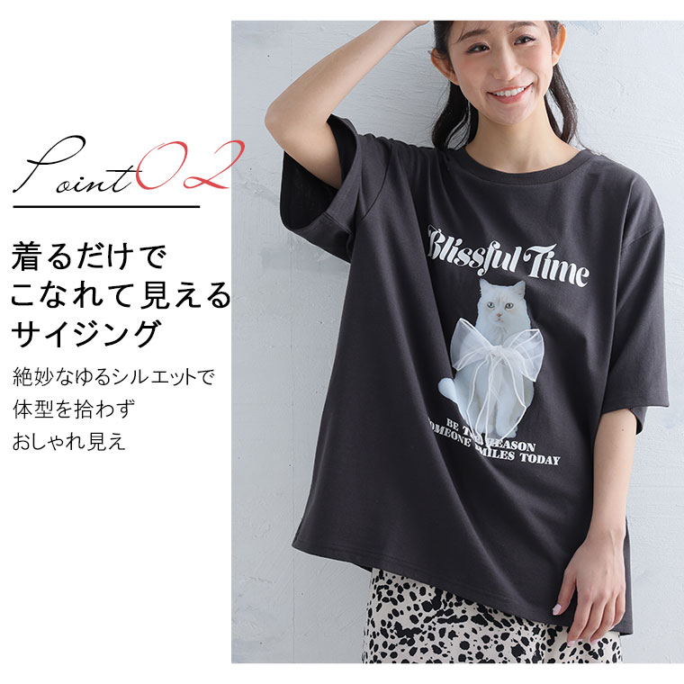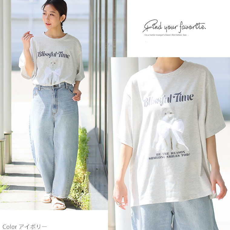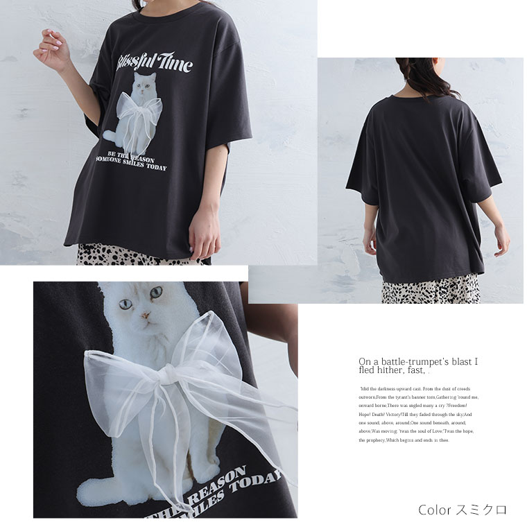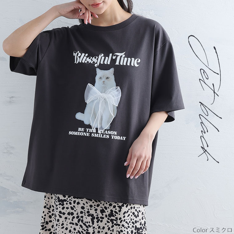 トレンドのキャットプリントにリボンモチーフを取り入れたなTシャツが登場