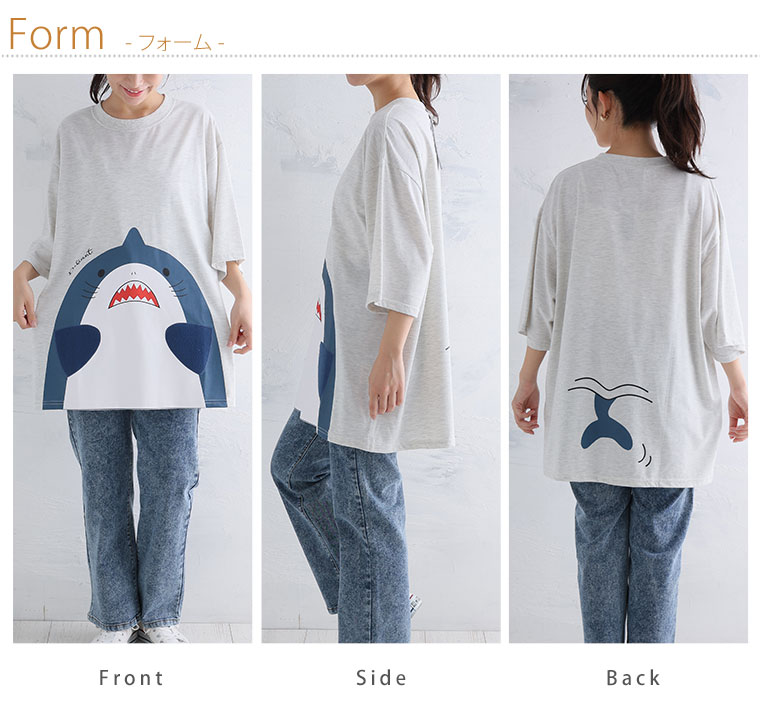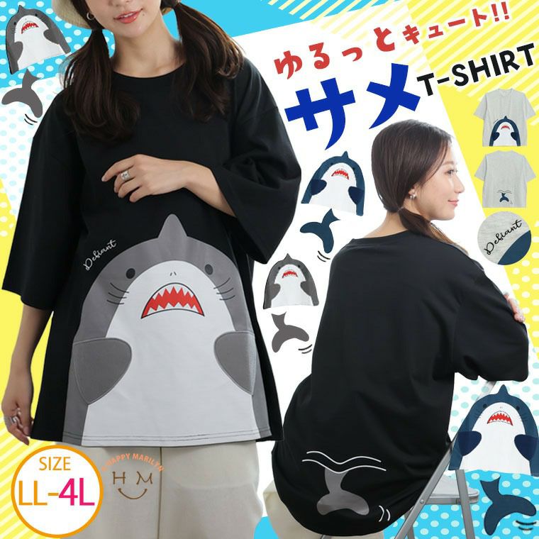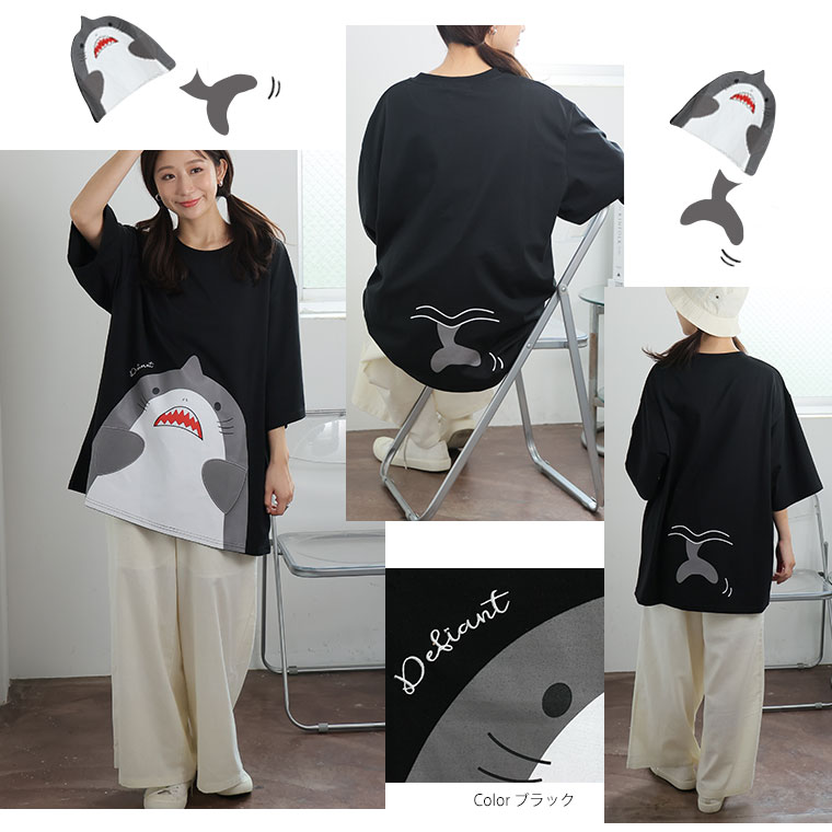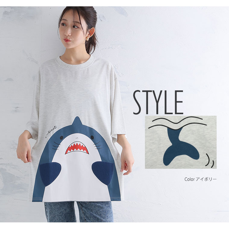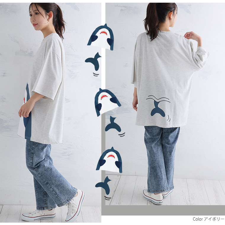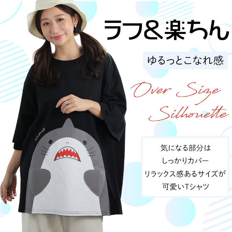 ゆったり着られる綿混Tシャツゆるっとラフ可愛いサメプリント