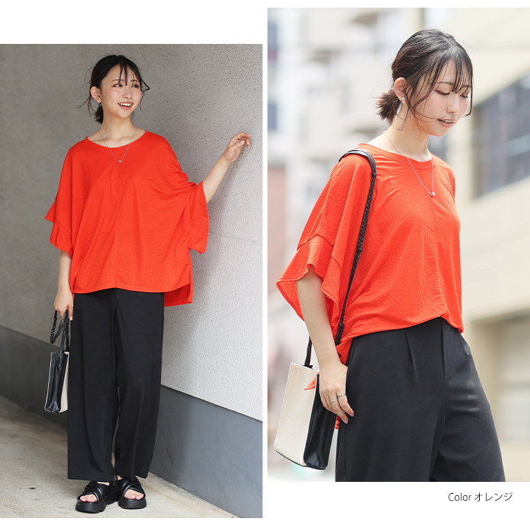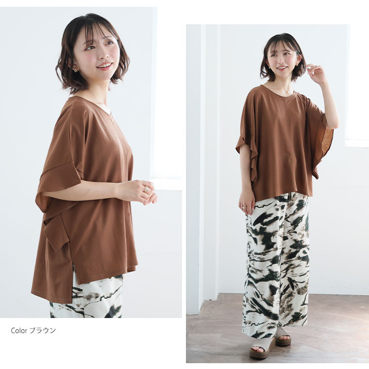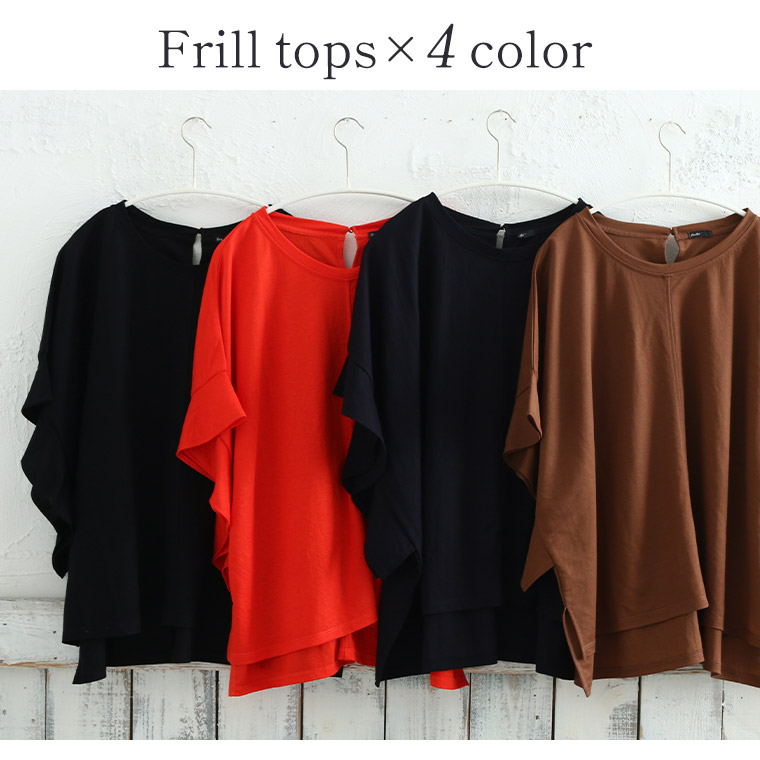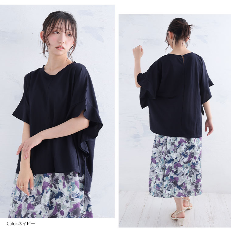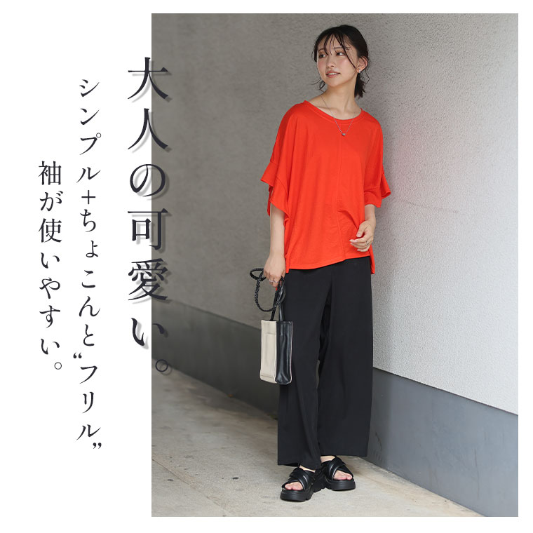 【Rin】ちょこんとフリルが可愛い 華奢魅せ 袖フリルゆるプルオーバー