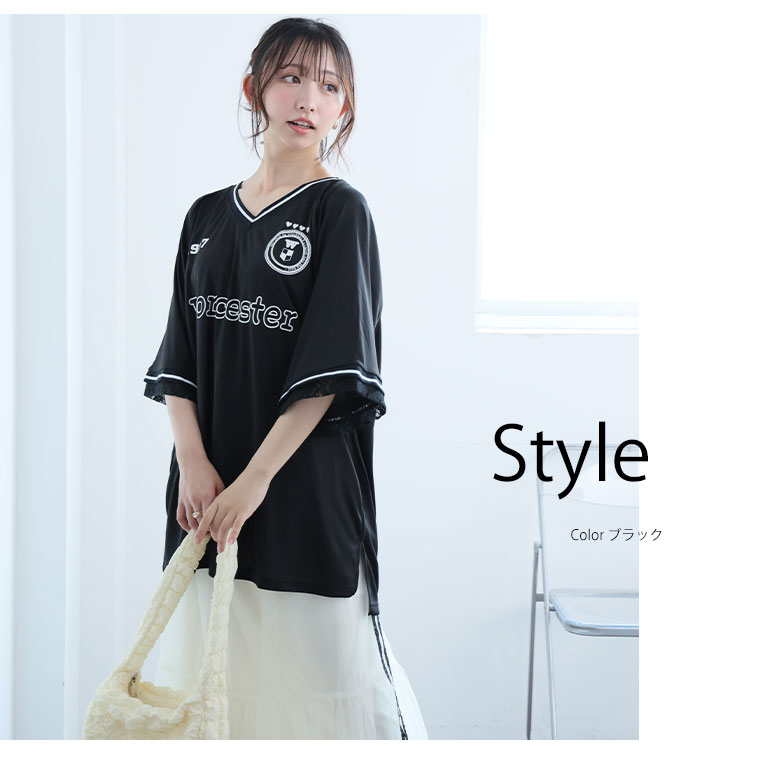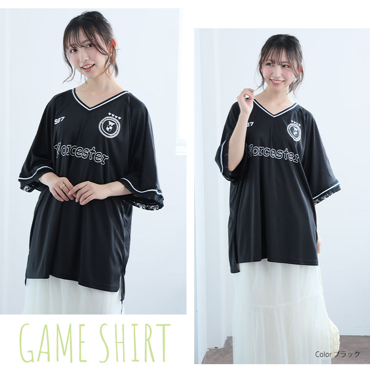 メンズライクなゲームシャツを袖口レースで可愛くアレンジ!