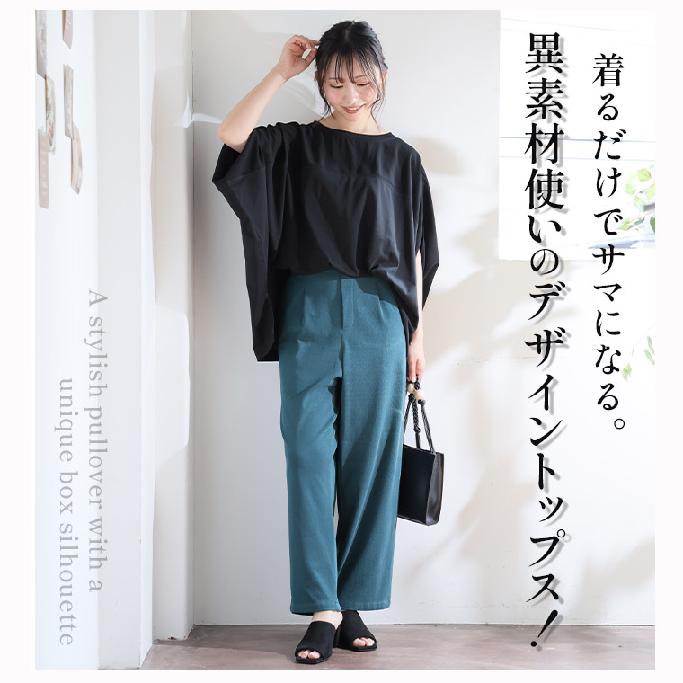 たっぷり身幅でゆったり着られる 異素材使い ボックスシルエット プルオーバー