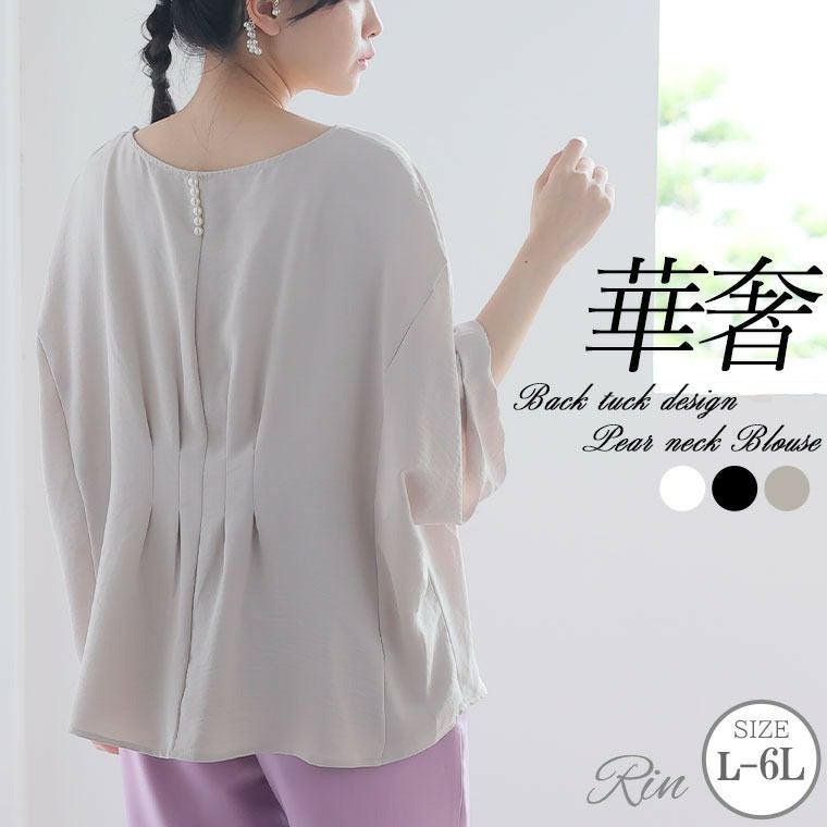 シャツ トップス LL 3L 4L 5L 6L 夏 夏物 夏服 夏用 ぽっちゃり リン きれいめ プラスサイズ Rin 細魅せ美人な上品 ポーラ バックパールネック ブラウス オフィス 大人 ビジネス 通勤 ママ 入園式 入学式 卒業式 【セレモニー】 | 大きいサイズの通販ならハッピーマリリン