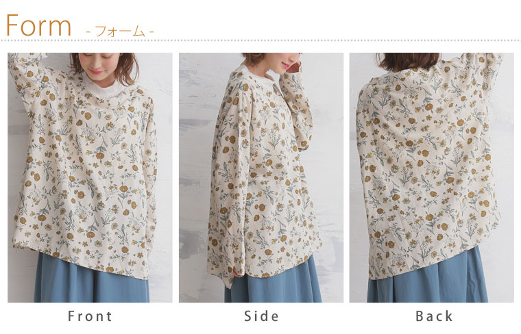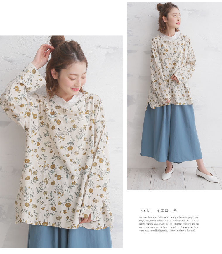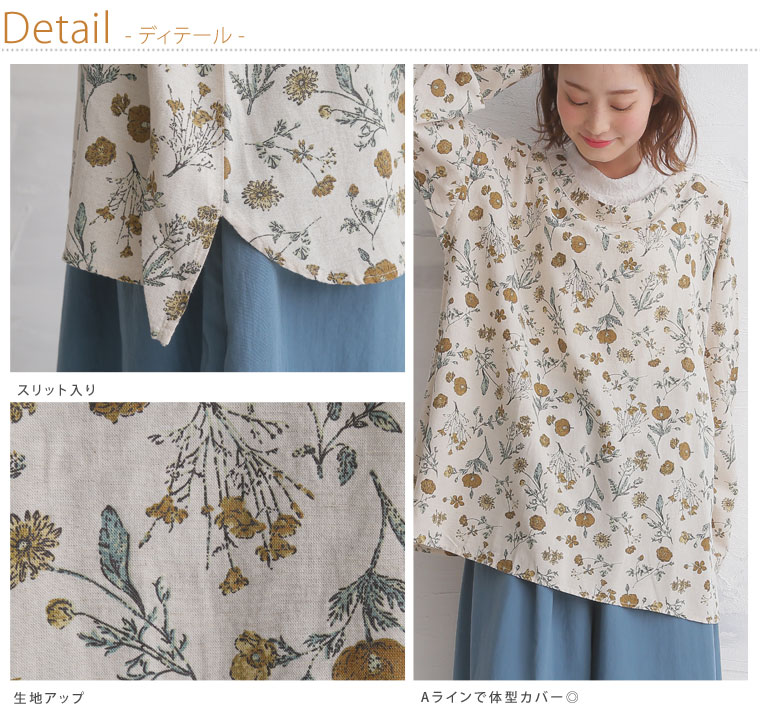 女性らしい花柄プリントが可愛い1枚!!Aラインで体型を拾わずゆるっと着られるのも嬉しいポイント♪