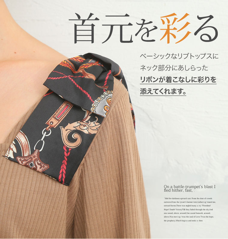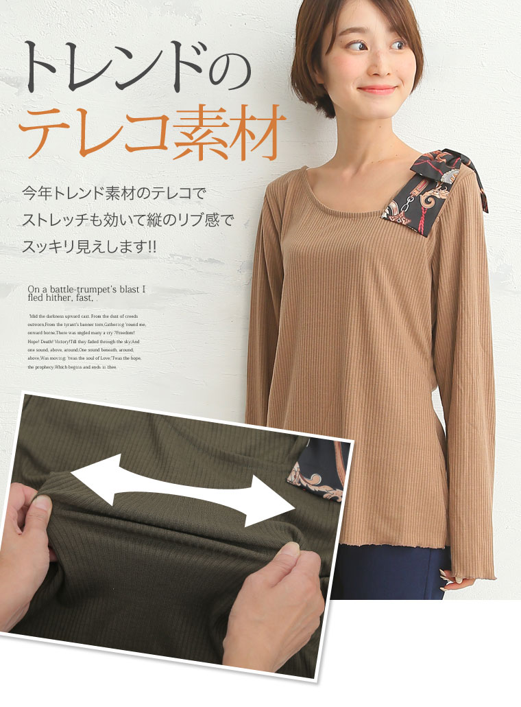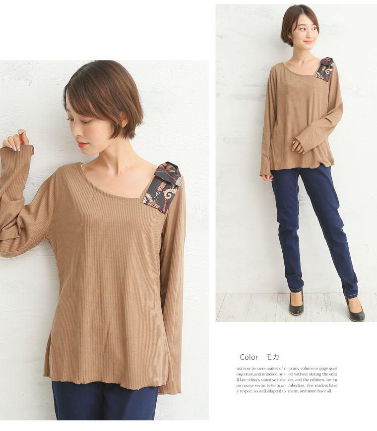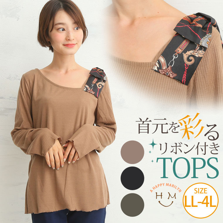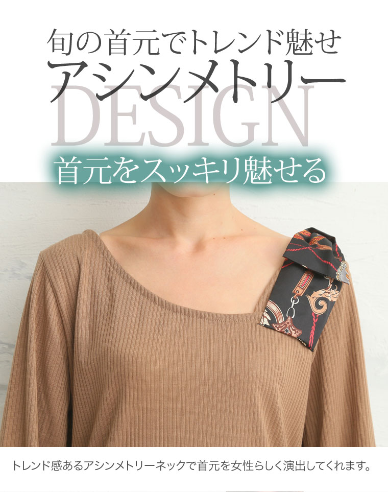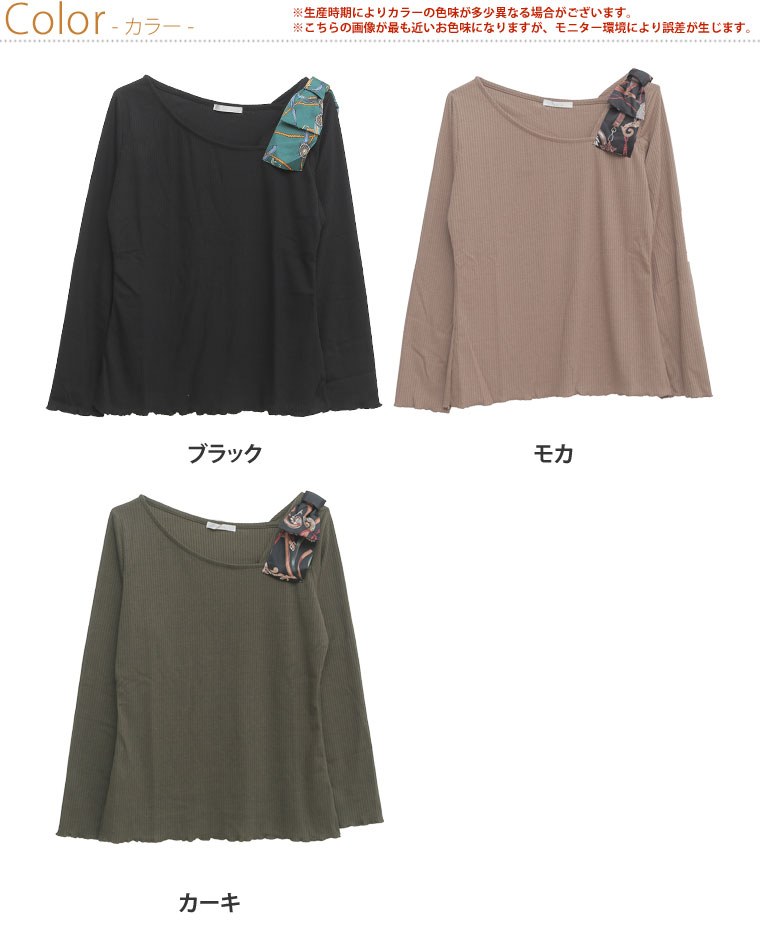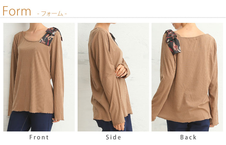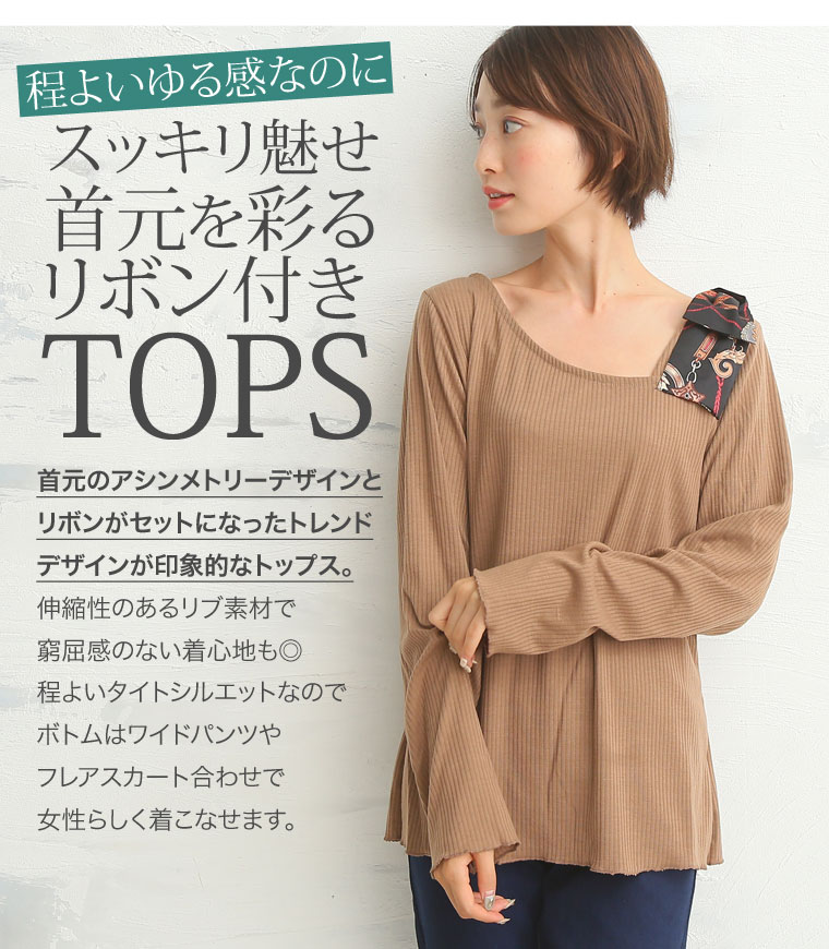 アシンメトリーデザインで個性的に着こなす!!リボン付きリブカットソー