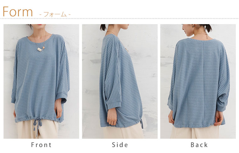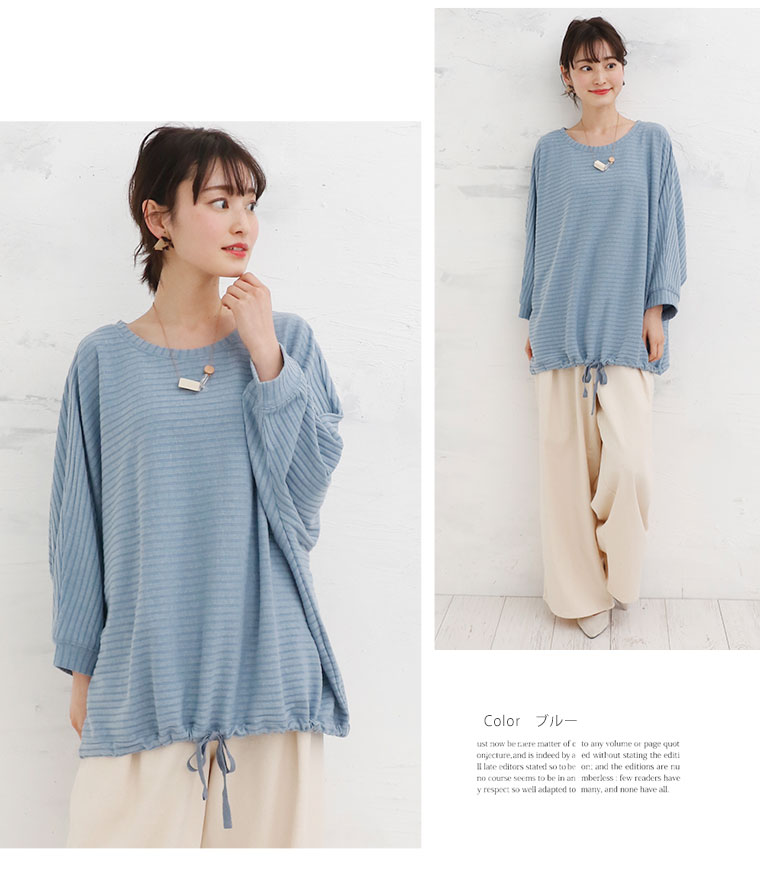 柔らか生地でゆったり着こなす。インディゴテレコカットプルオーバー