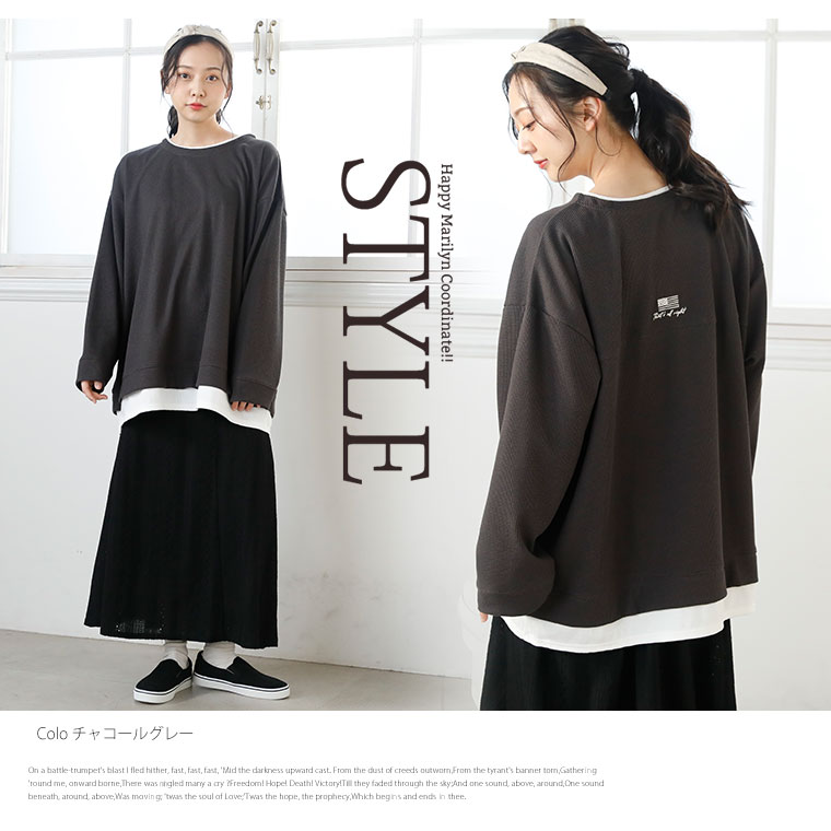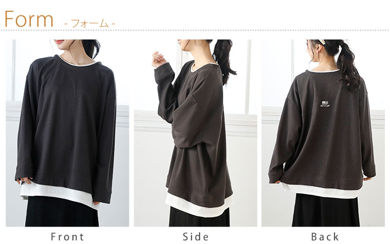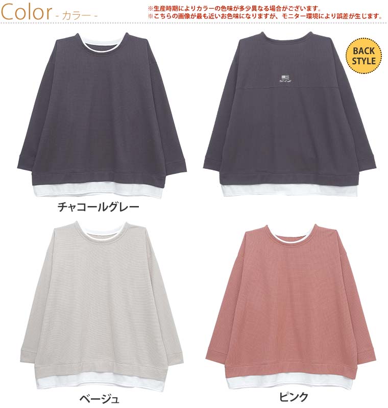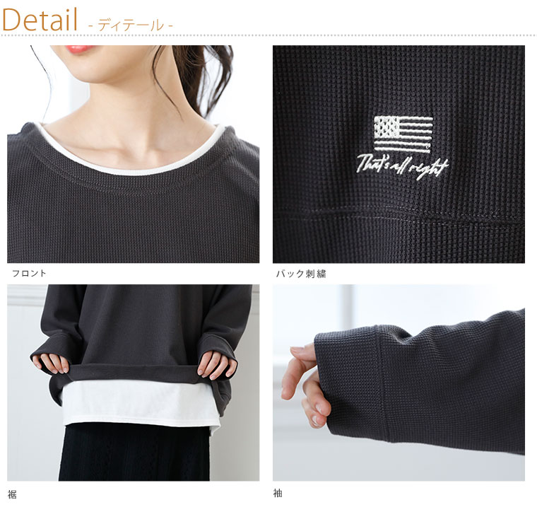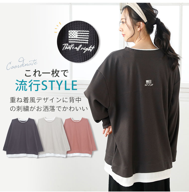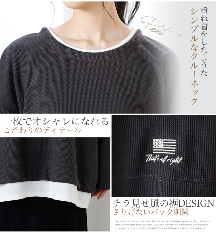 ワッフル生地でさらりと着れる!1枚で重ね着風プルオーバー