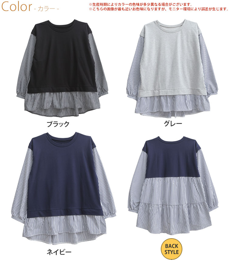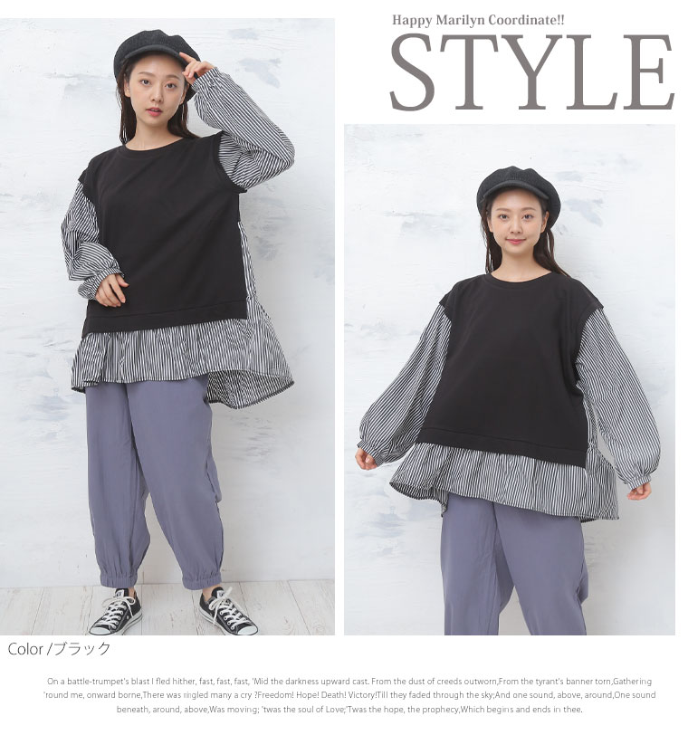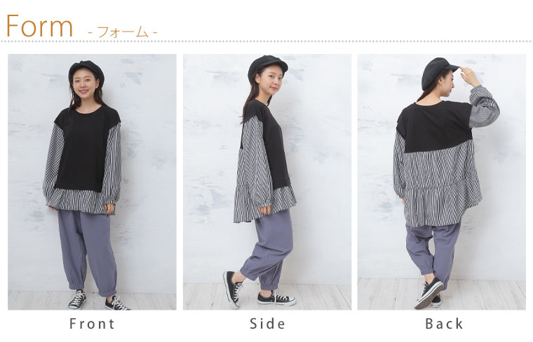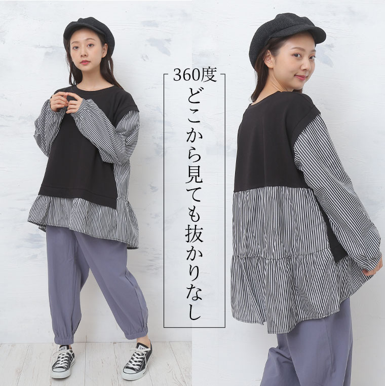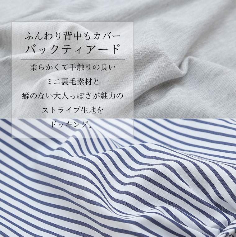 ミニ裏毛素材とストライプ生地がドッキングしたほの甘デザイン