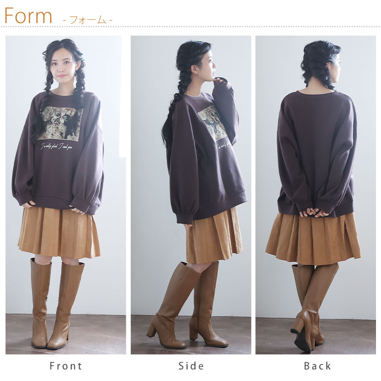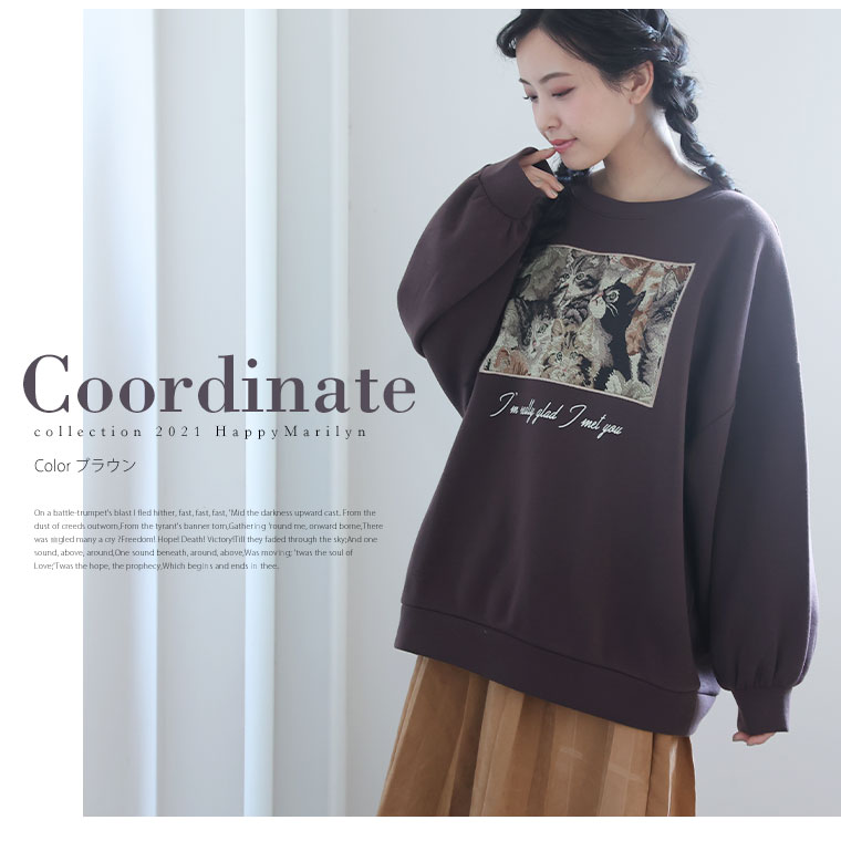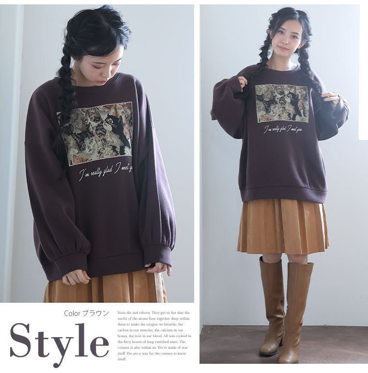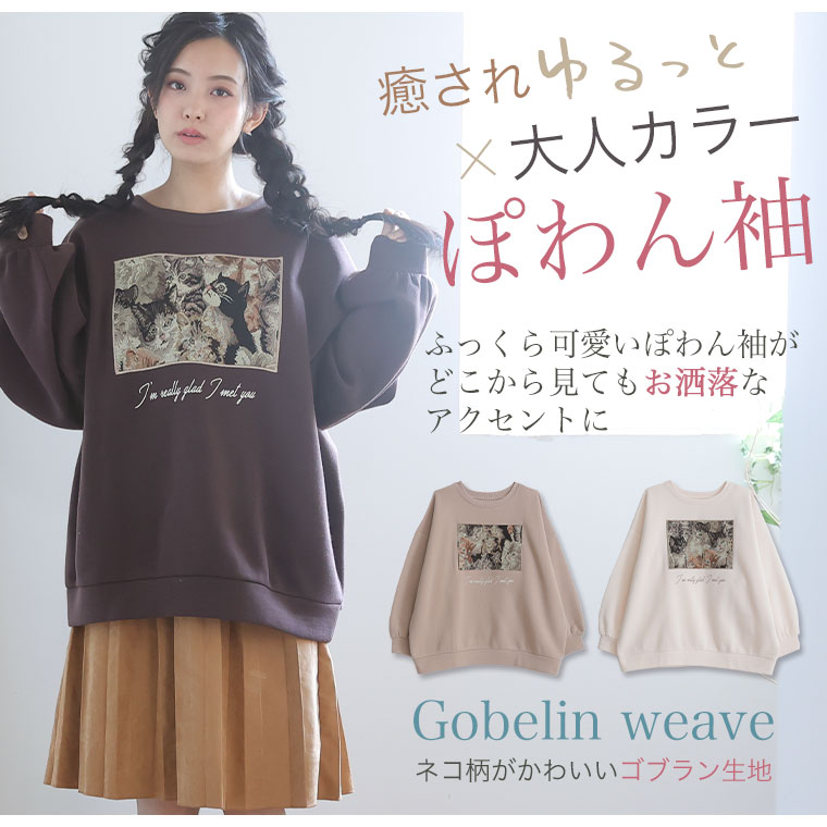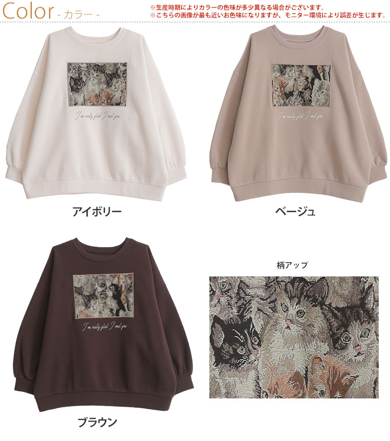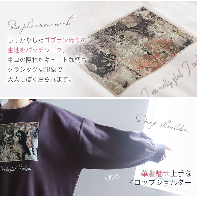3. 大きいサイズ ネコ柄 ゴブラン アップリケ あったか 裏起毛 スウェット