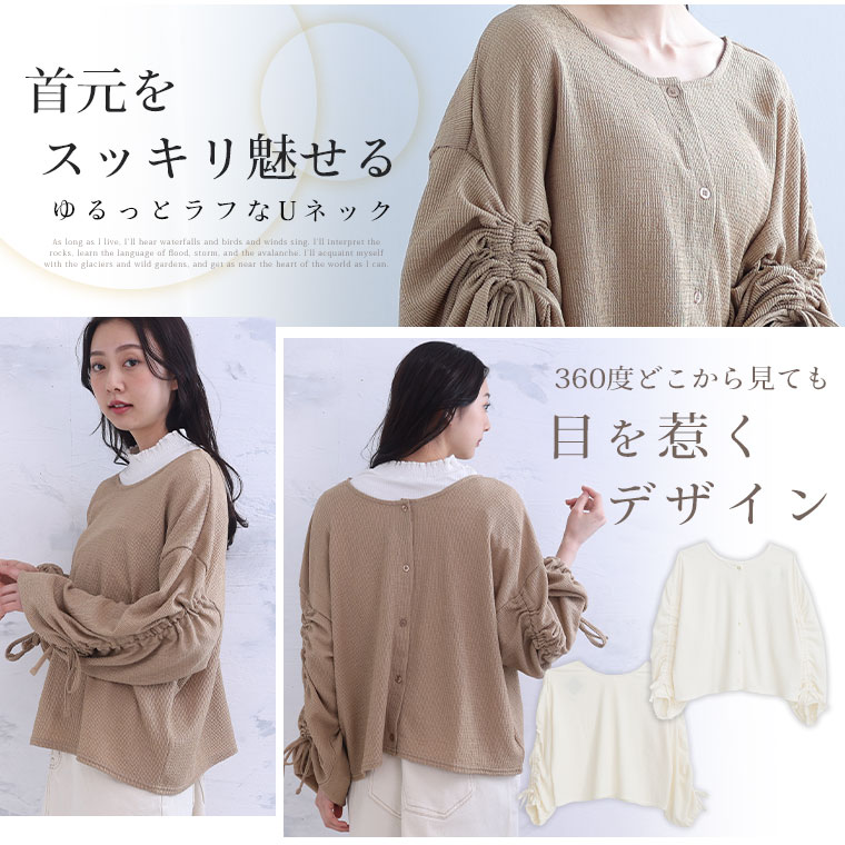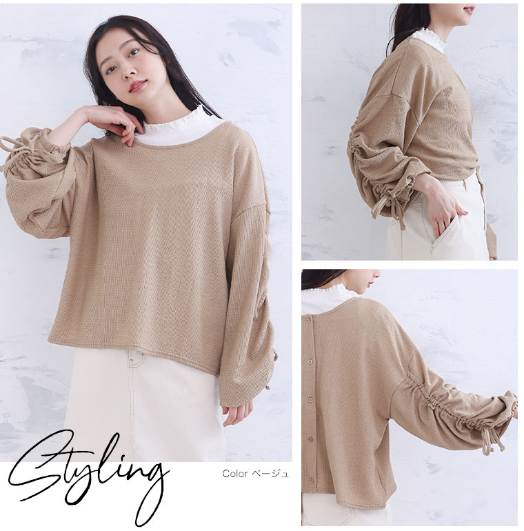 ドロストスリーブの個性的おしゃれが目を惹くTOPS