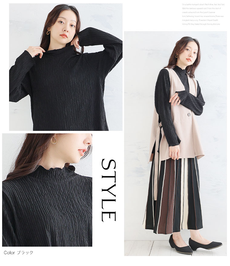 着回し抜群 膨れ素材AラインTOPS