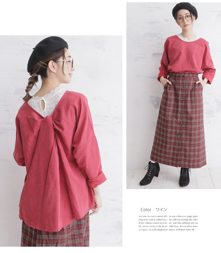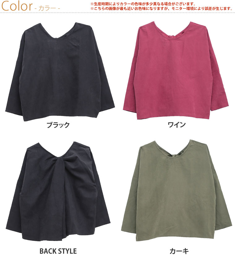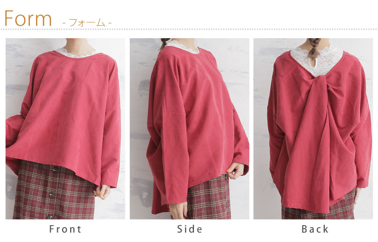 リボン風モチーフでバックスタイルを華やかに。ピーチスキンプルオーバー