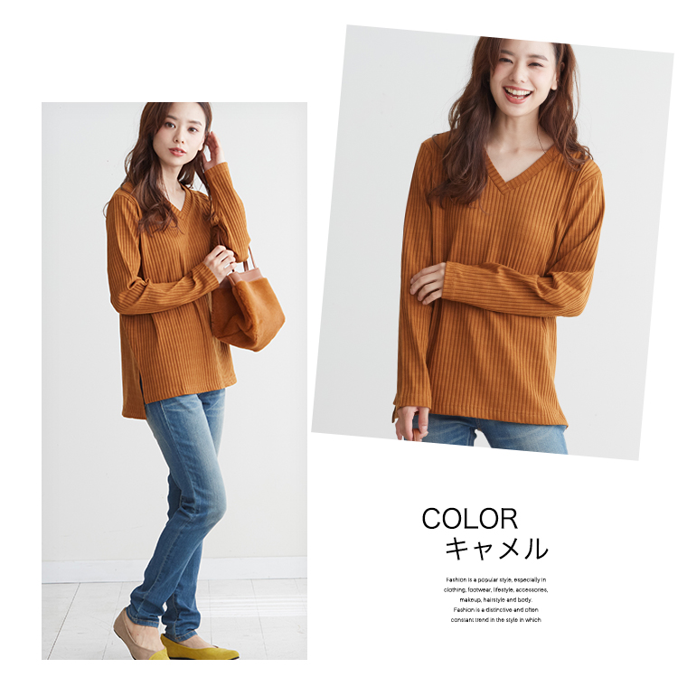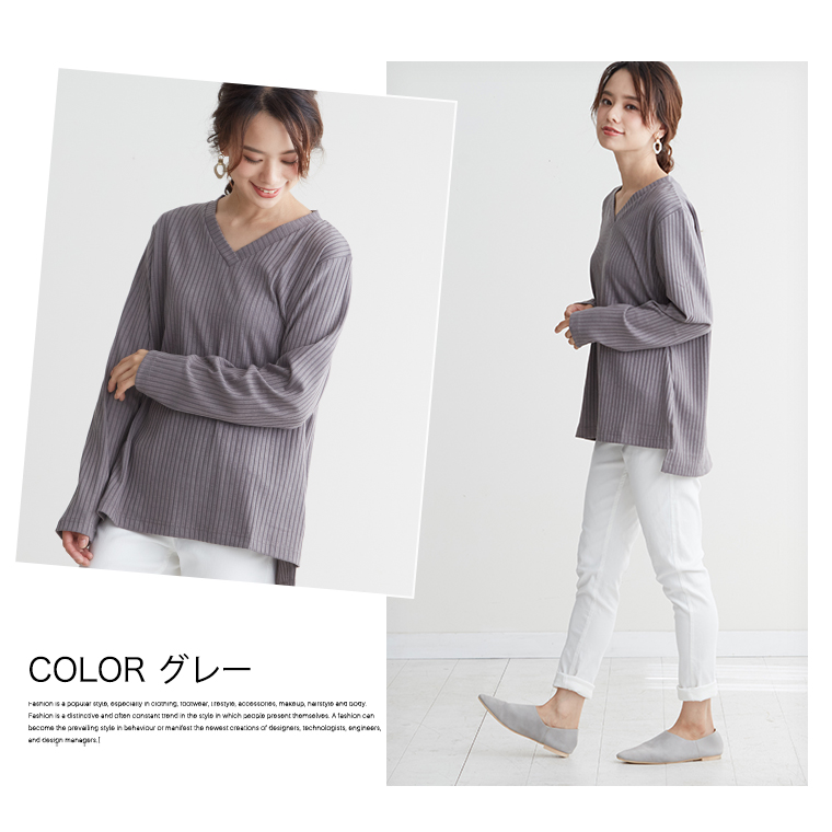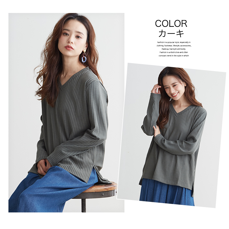 Vネック長袖カットソー