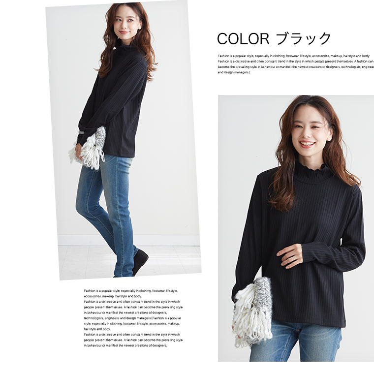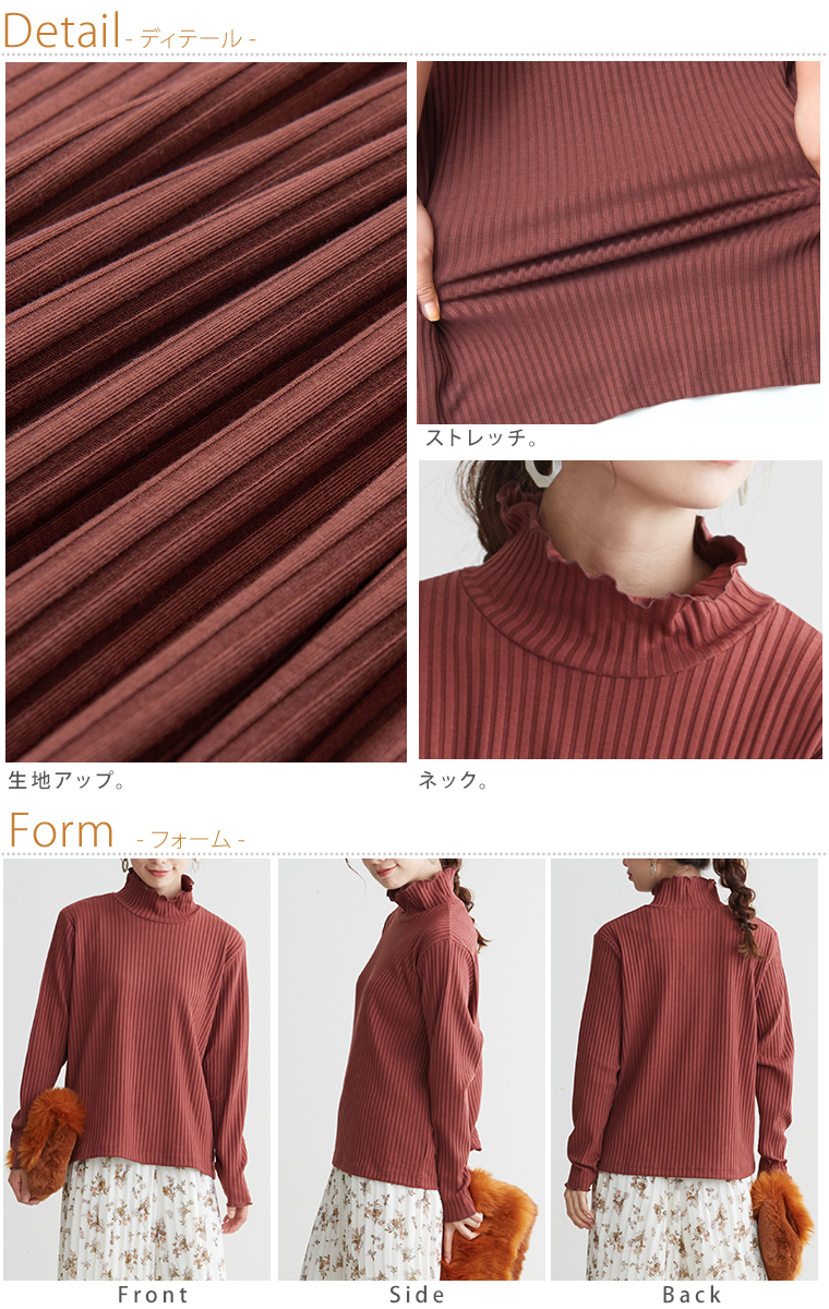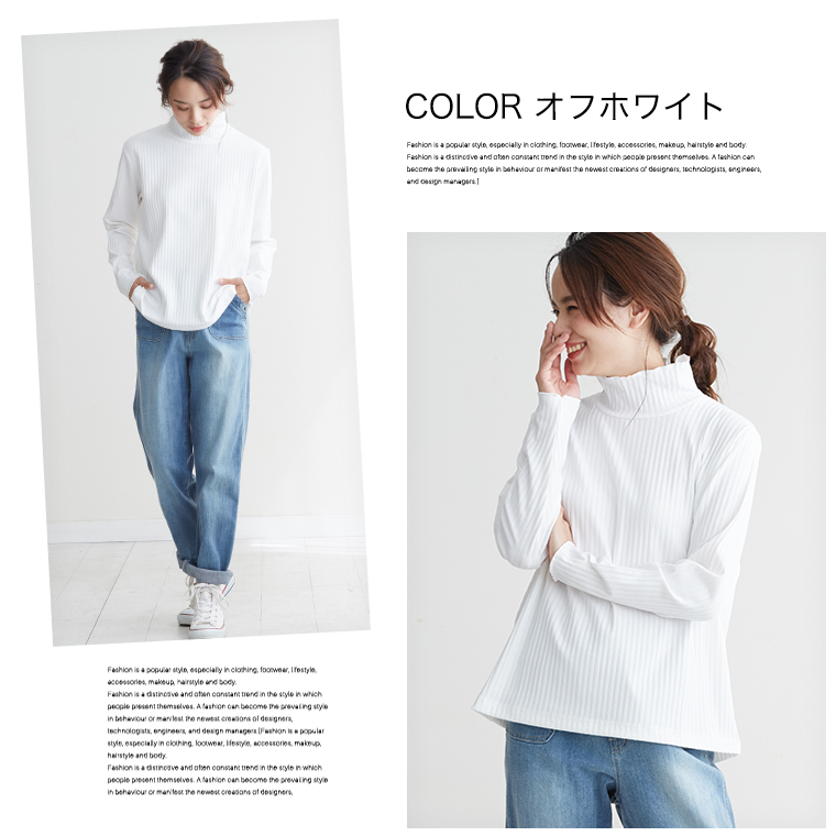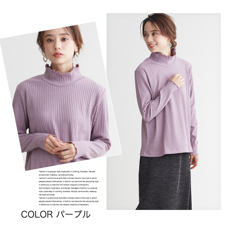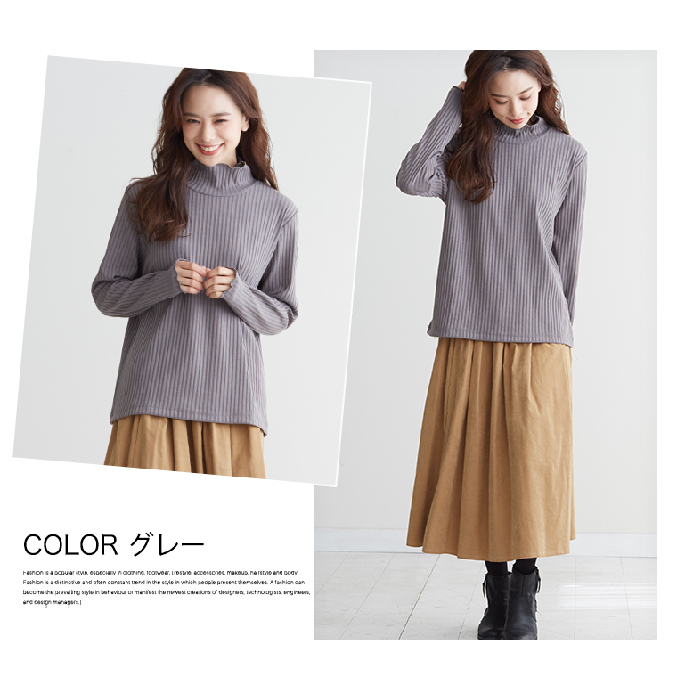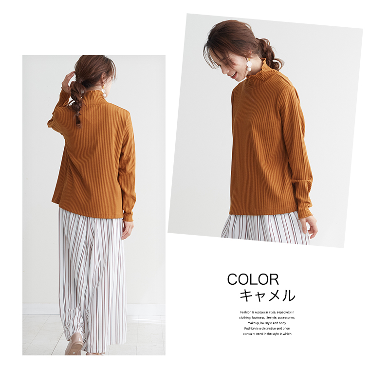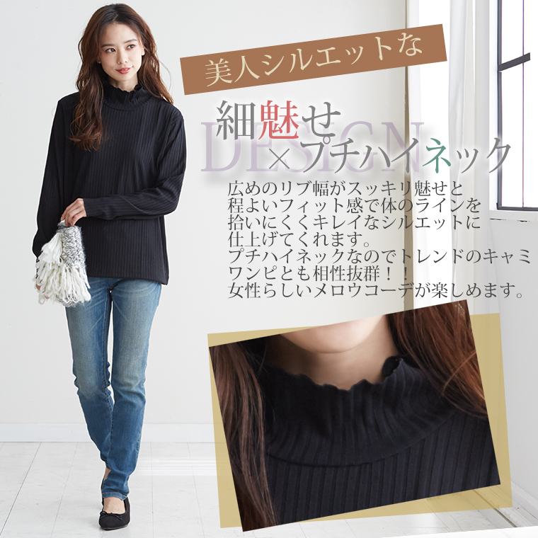 凹凸のある生地で体型カバー◎プチハイネックが可愛いシンプルだから使いやすいメロウトップスです♪