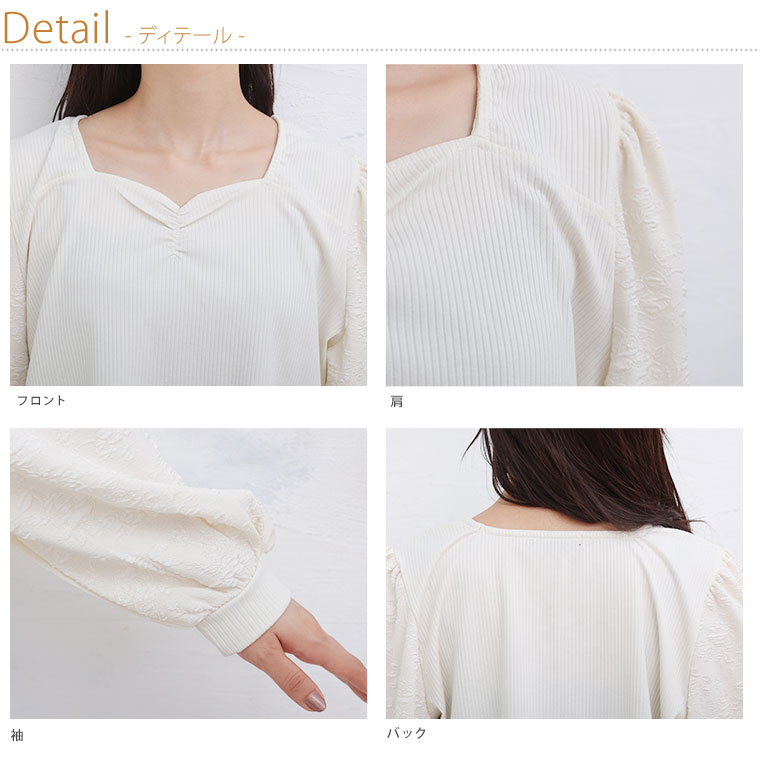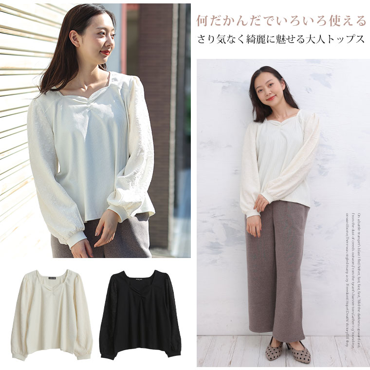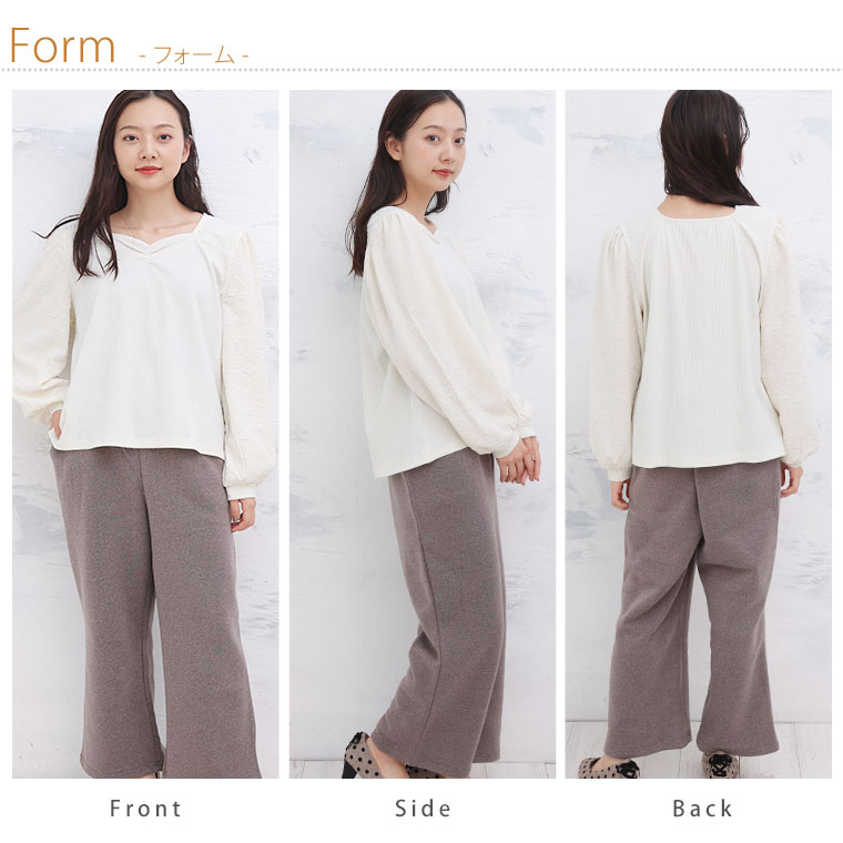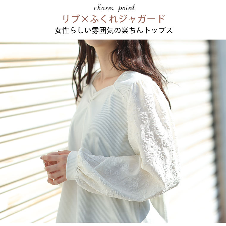 ふくれジャガードでふわりと雰囲気のあるコーディネートに