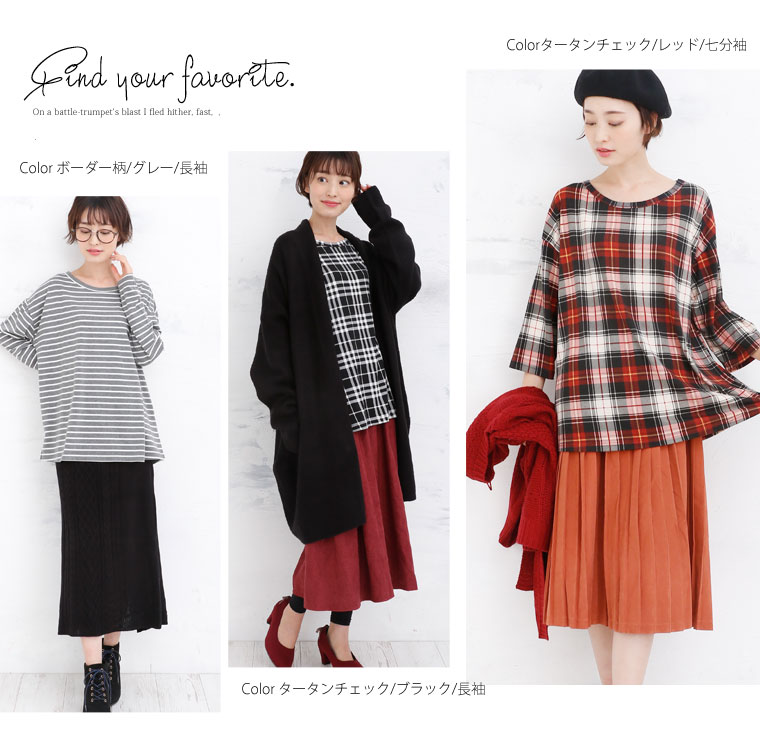 コーデ商品…(ボーダー柄/グレー/長袖)【類似品】スカート(タータンチェック/ブラック/長袖)【類似品】カーデ/【類似品】スカート/レギンス(タータンチェック/レッド/七分袖)【類似品】スカート
