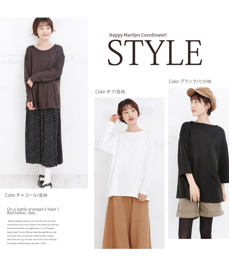 七分袖・長袖の2タイプをご用意しました。シンプルデザインで寒い季節もオシャレな着こなしに。