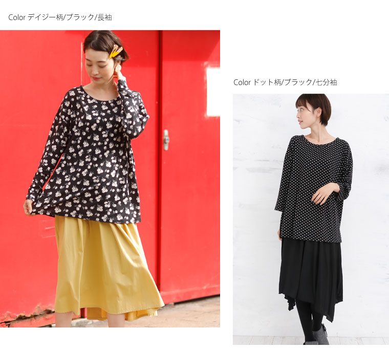 コーデ商品…(デイジー柄/ブラック/長袖)スカート(ドット柄/ブラック/七分袖)スカート/タイツ