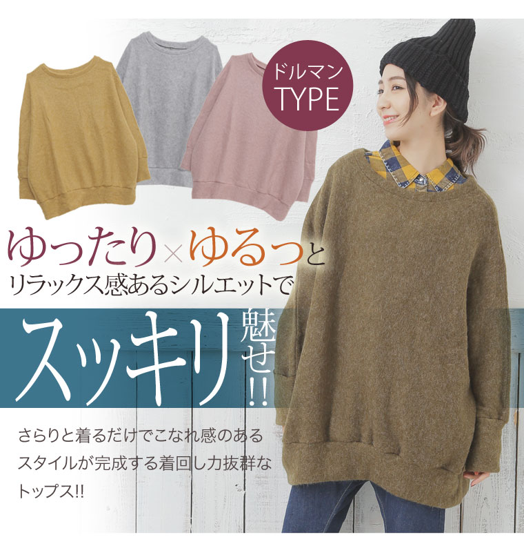 ゆったりシルエットで体型カバー◎ニットソードルマンスリーブプルオーバー
