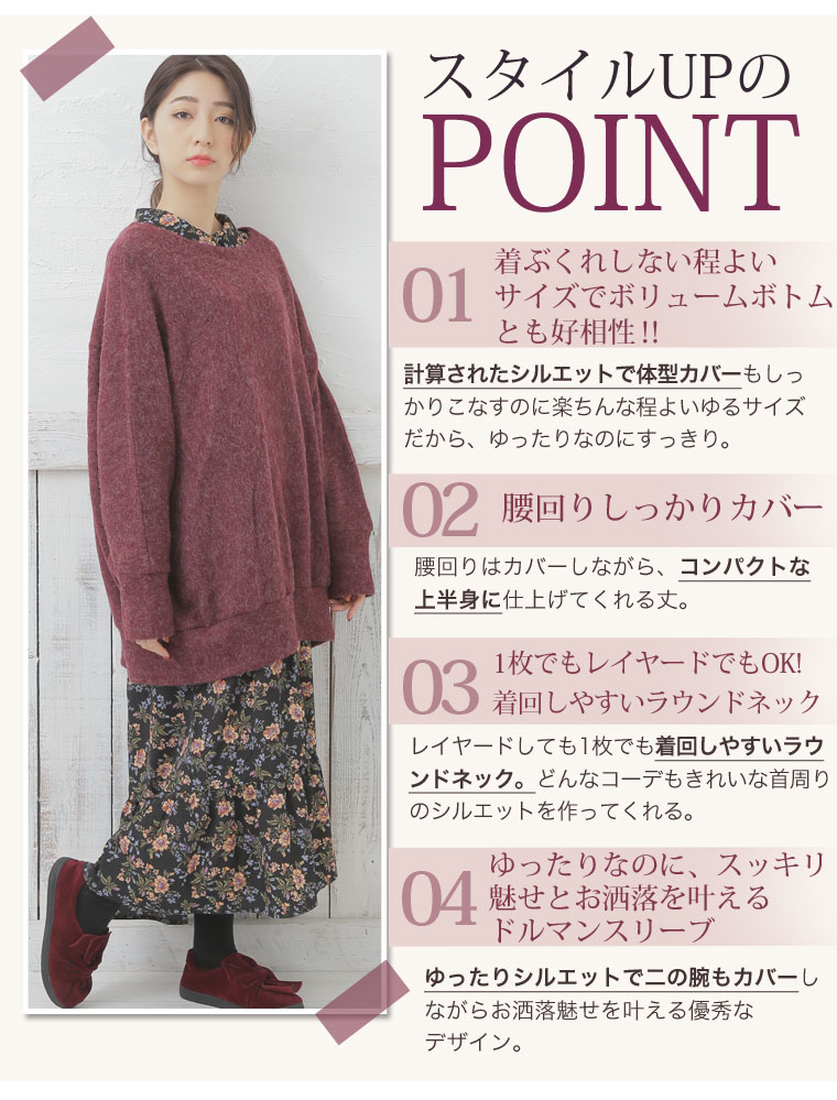 ほっこりとした杢調カラーで季節感たっぷりに♪ゆるシルエットが可愛い1枚