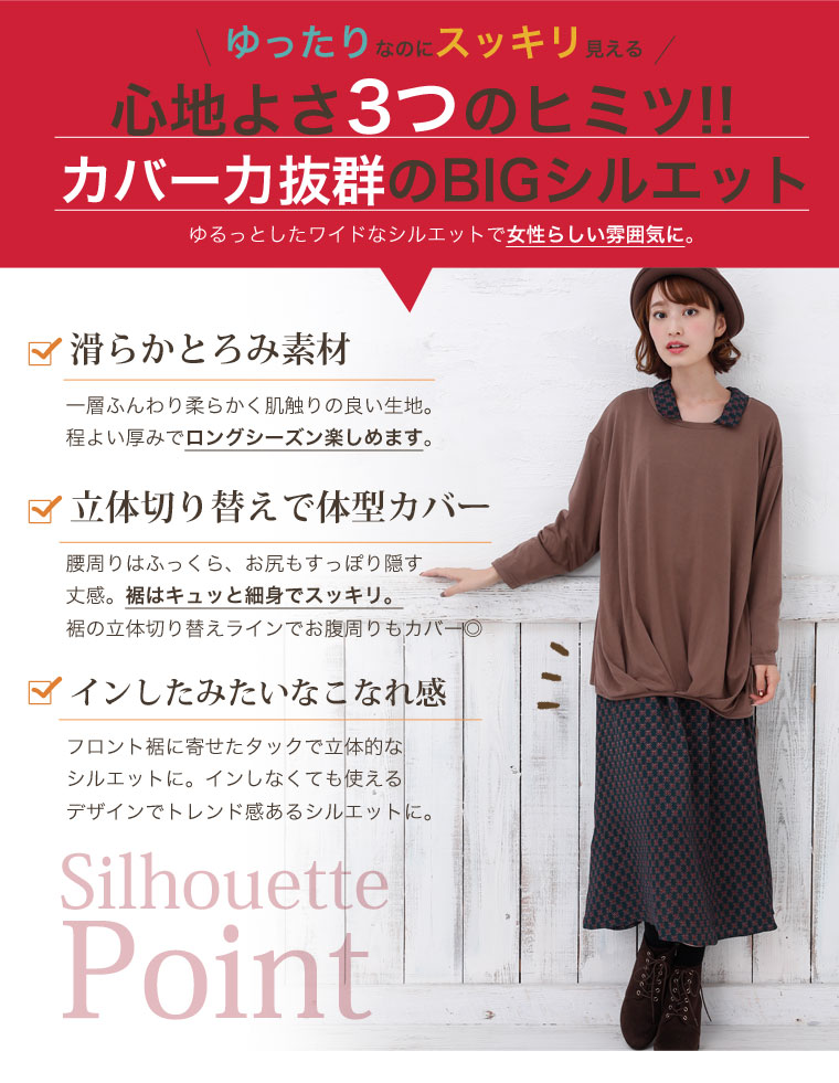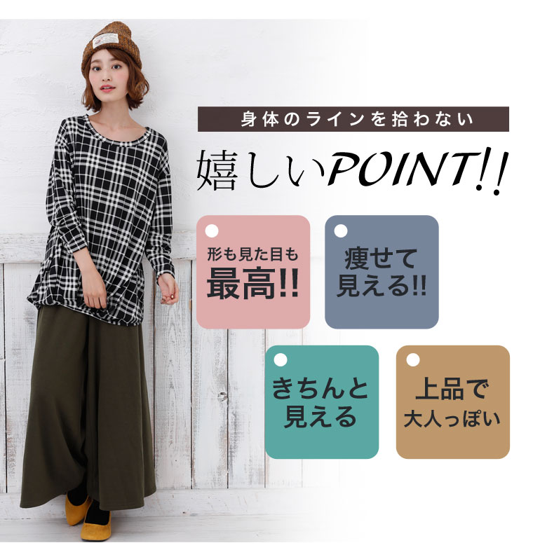 体型カバーを叶え理シルエット×豊富なカラーと柄バリでオシャレな秋冬スタイルに。