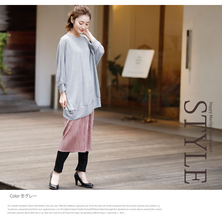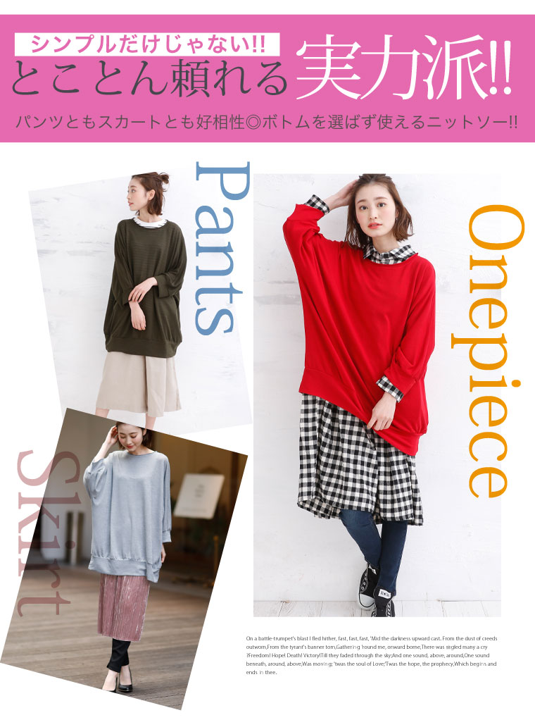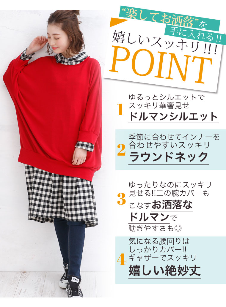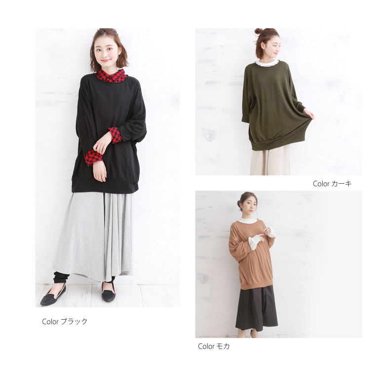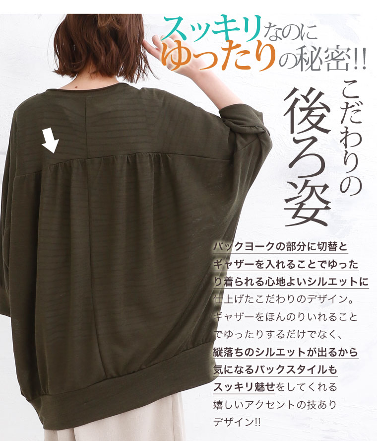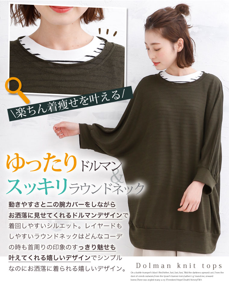 4. 大きいサイズ さらりと心地よい 細魅せ ドルマン 長袖 ニットソー トップス