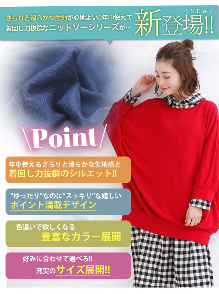 オリジナル プルオーバー LL 3L 4L 5L 6L 7L 8L 春 春物 春服 ぽっちゃり ゆったり かわいい おしゃれ カジュアル ビッグサイズ さらりと心地よい 細魅せ ドルマン 長袖 ニットソー トップス