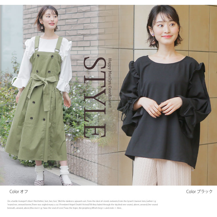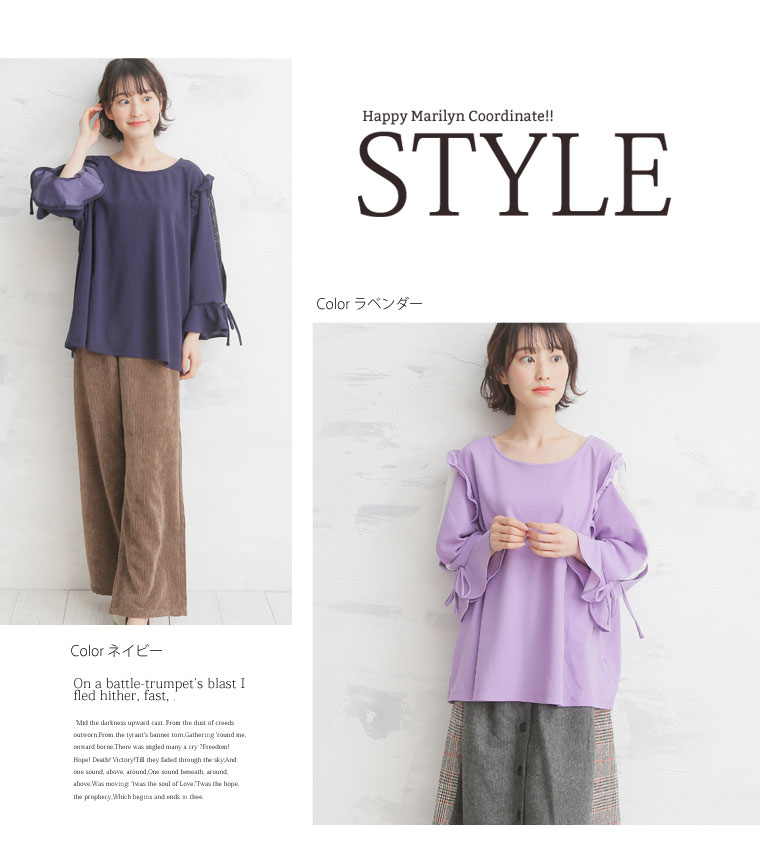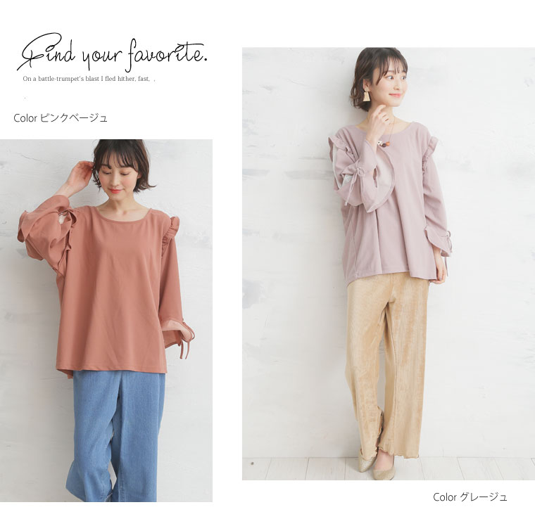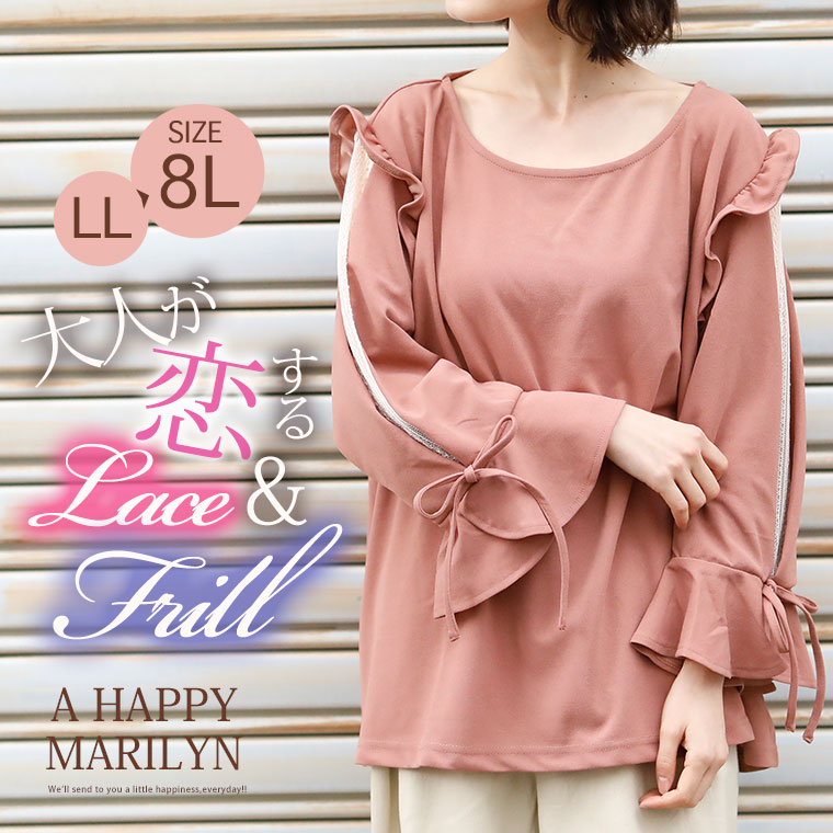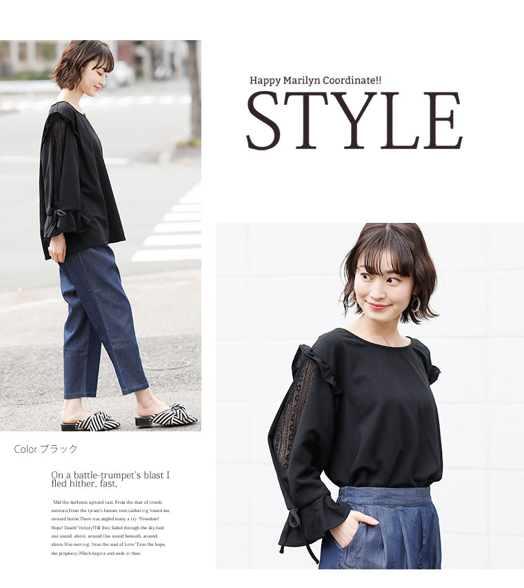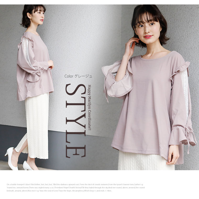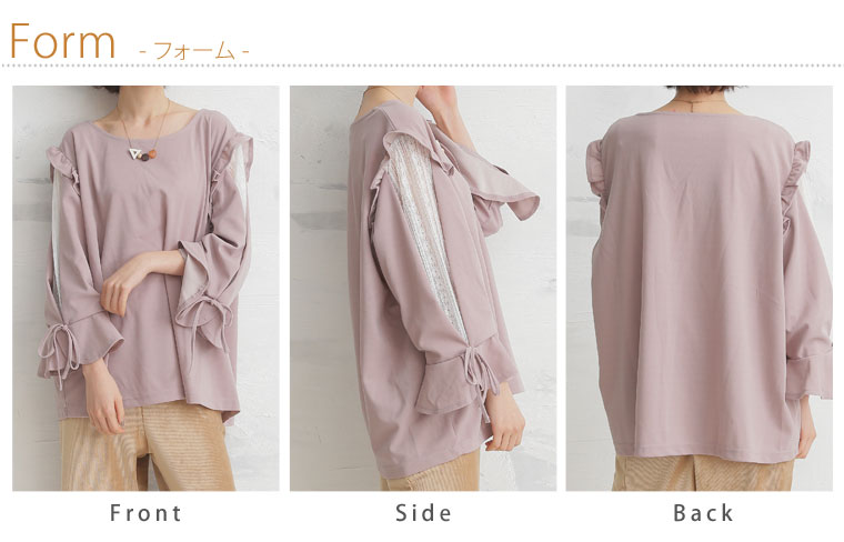 ちらりと覗く袖レースがアクセント!!ひらりと揺れるフリル袖トップス