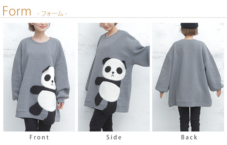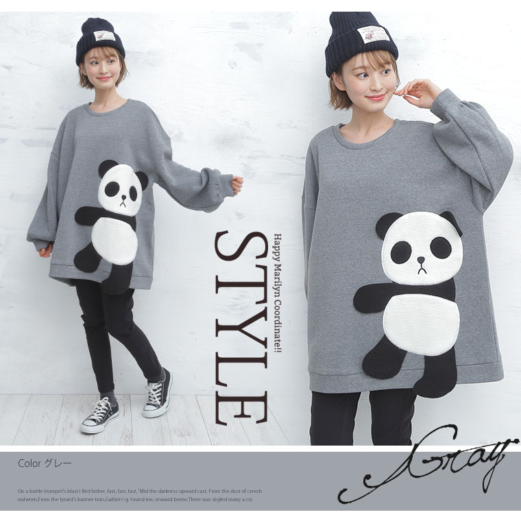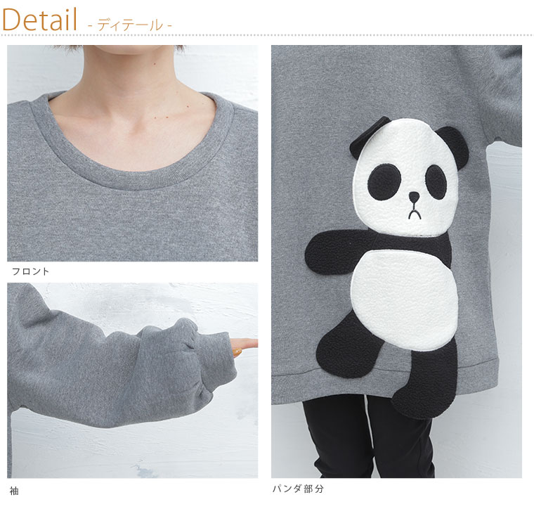 4. 大きいサイズ あったか 裏起毛 着ぶくれ回避の パンダ プルオーバー