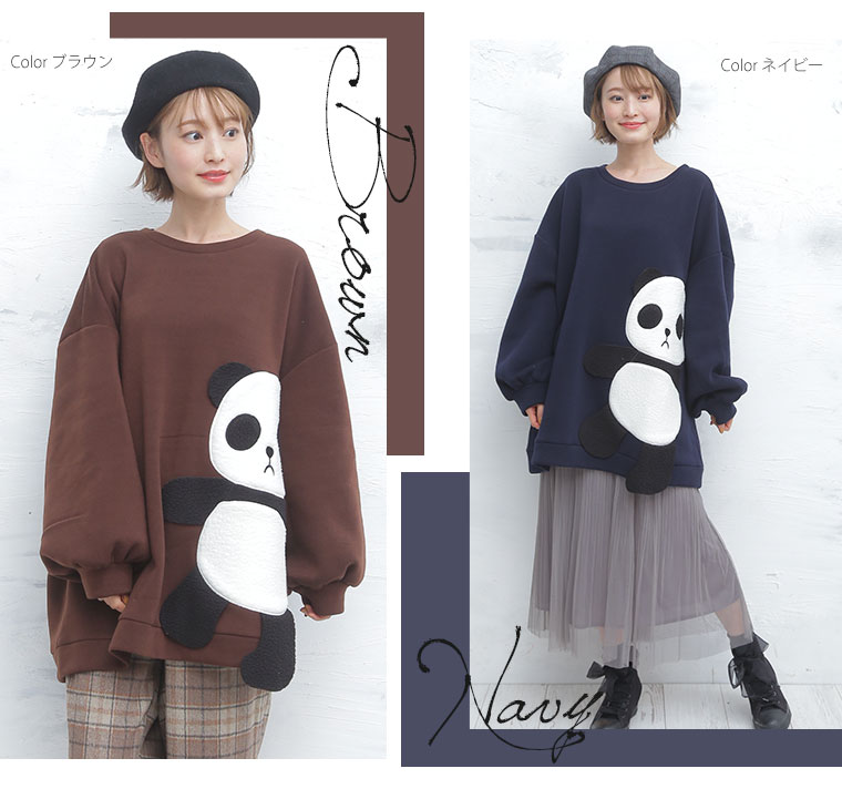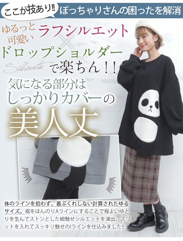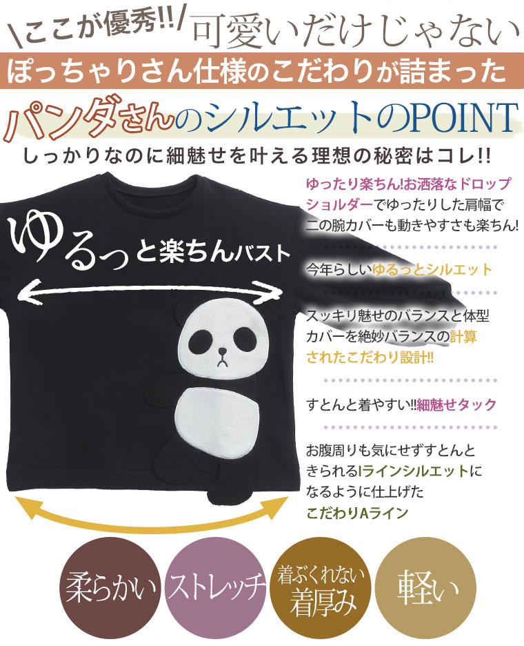 大きいサイズ あったか 裏起毛 着ぶくれ回避の パンダ プルオーバー